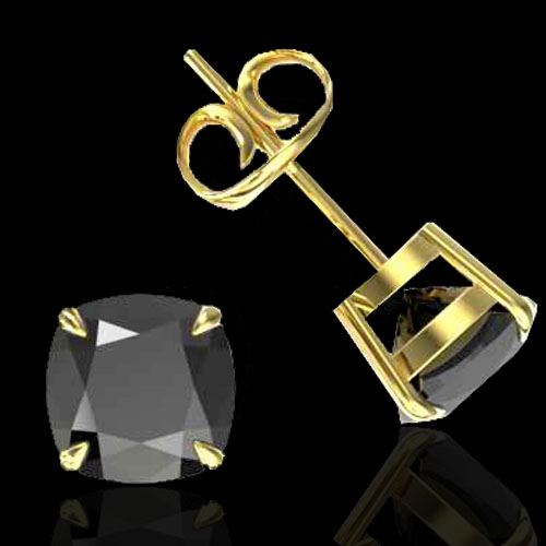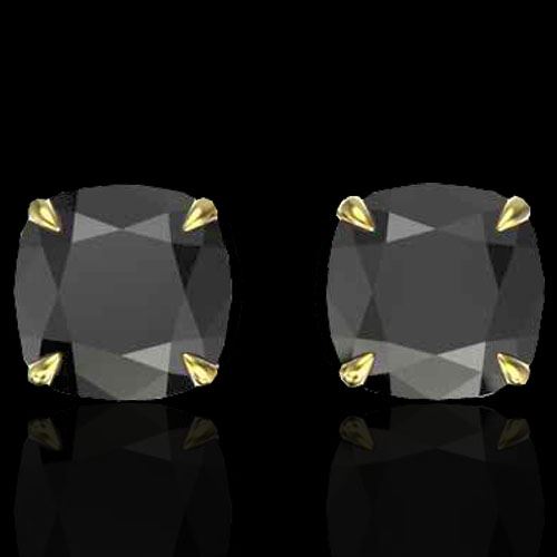 REF-141A8X -21736 ---- 6 CTW Cushion Cut Black VS/SI Diamond Designer Stud Earrings 18K Yellow Gold ---- Luxury Designer Brand Earring Appraised at $8,600 Certificate Number US21736 18k Yellow gold, Earring Size is 9 Millimeter, Earring measuring approx. 9 mm x 9 mm, weighing in total approx. 4 grams. Made in the USA and is stamped 18k, Main stone 6 carat total weight containing 2 pieces of Black Opaque color with VS quality Cushion shape cut Diamond , Stone #2 carat total weight containing pieces of color with quality shape cut
