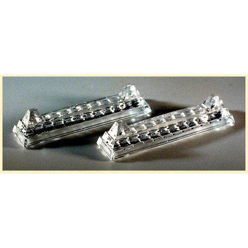 Beautiful set of (6) crystal glass knife rests in pyramid shape Art Deco design. Excellent condition, no chips, cracks or repairs. Signed on label : Hand Made Bohemia Glass, Czech Republic. Dimension : 3 5/8 inches long and 3/4 inches wide. Set your table with style!!! Have more than 2, please check quantity available. Also available are identical knife rests in Cobalt Blue glass ($100) and Pink glass ($100), which are listed separately and pictured below.