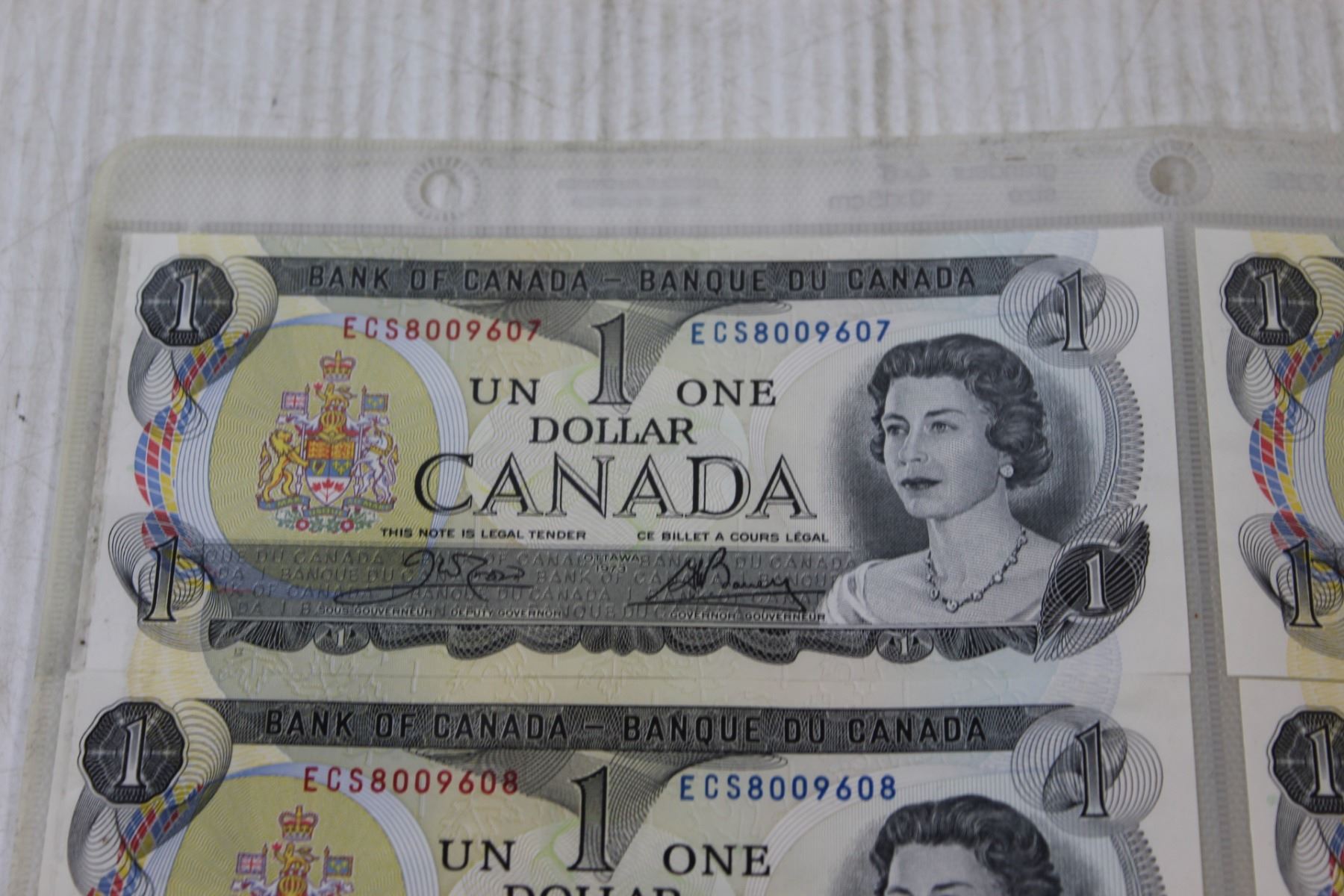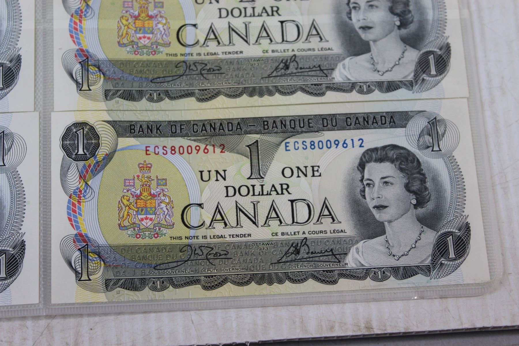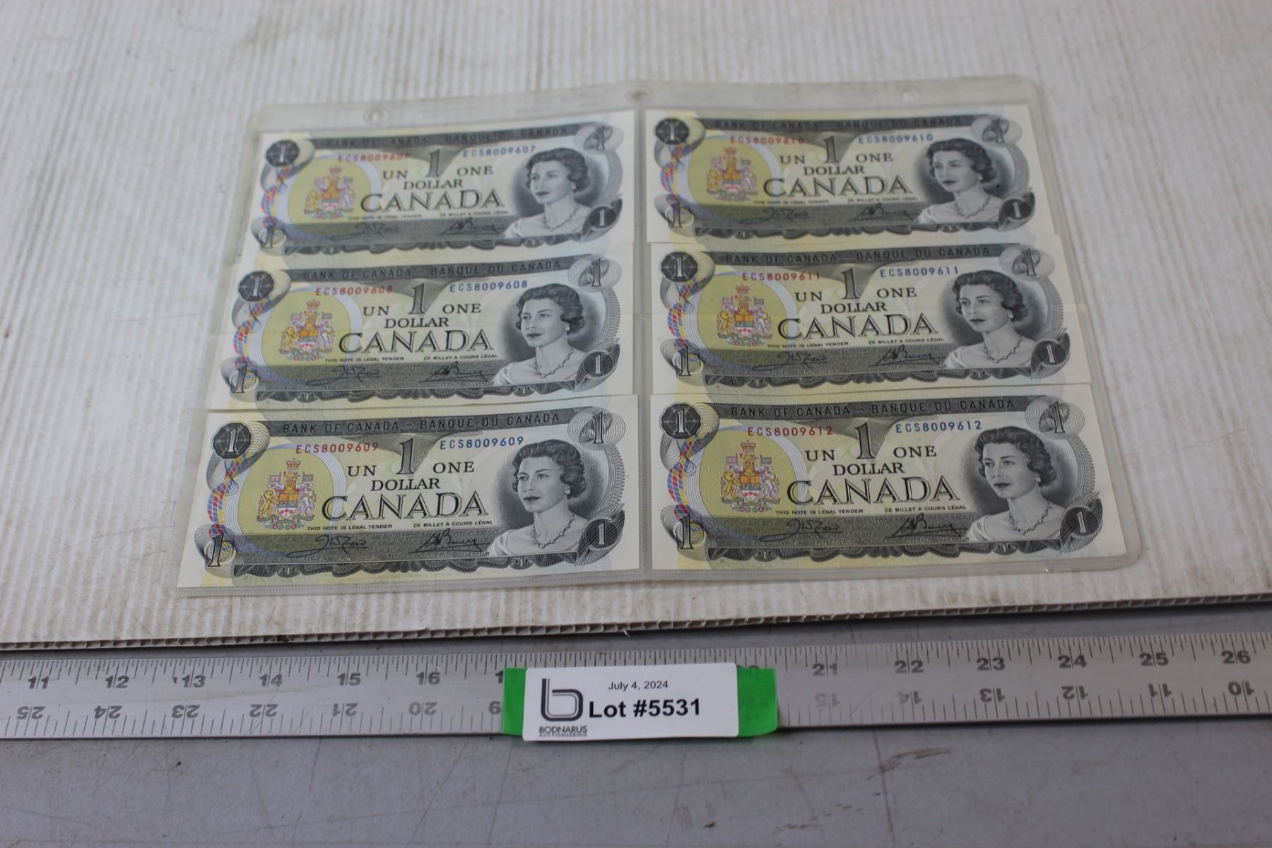 (6) Canadian $1.00 Bills in Sequence Order - #8009607-9612