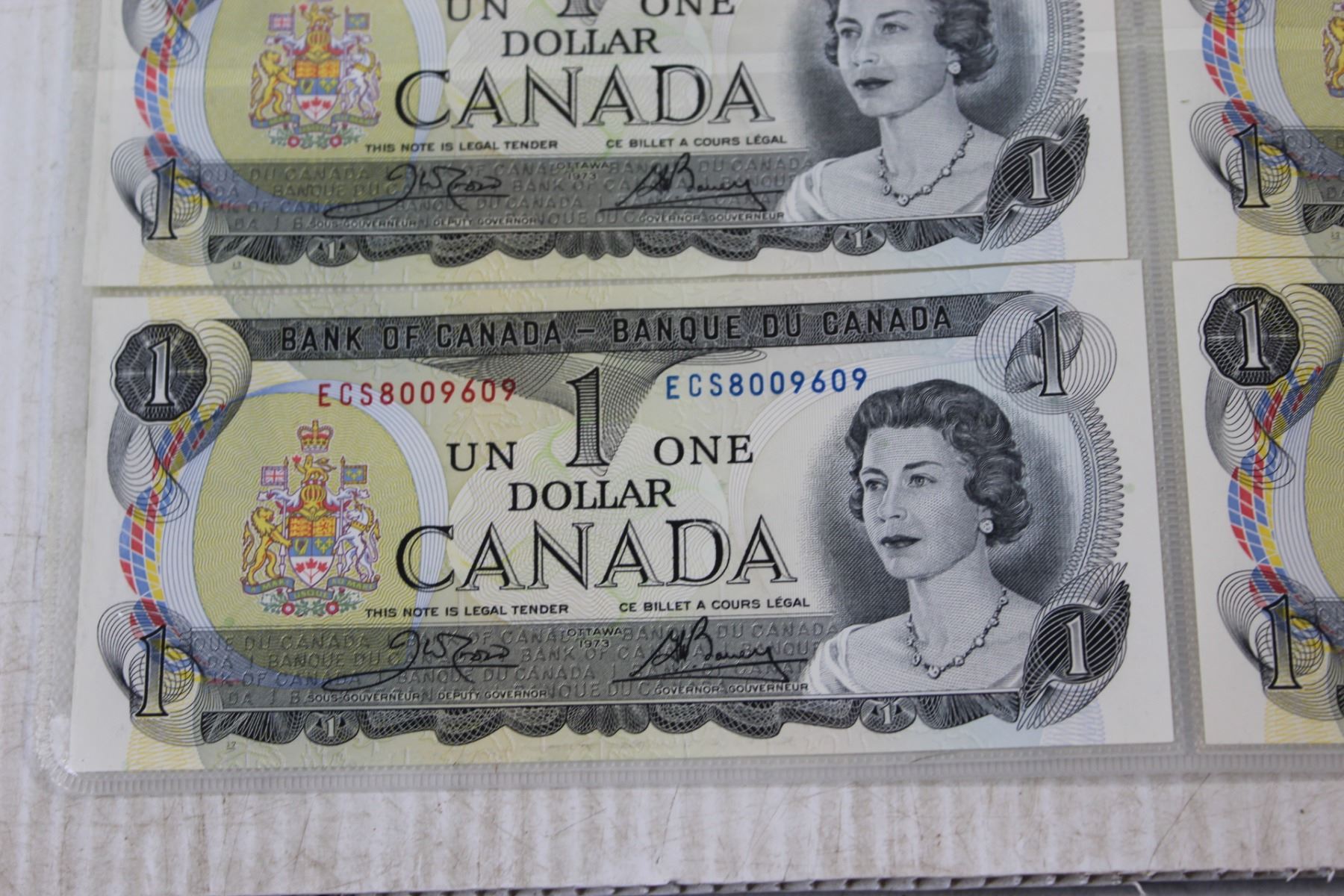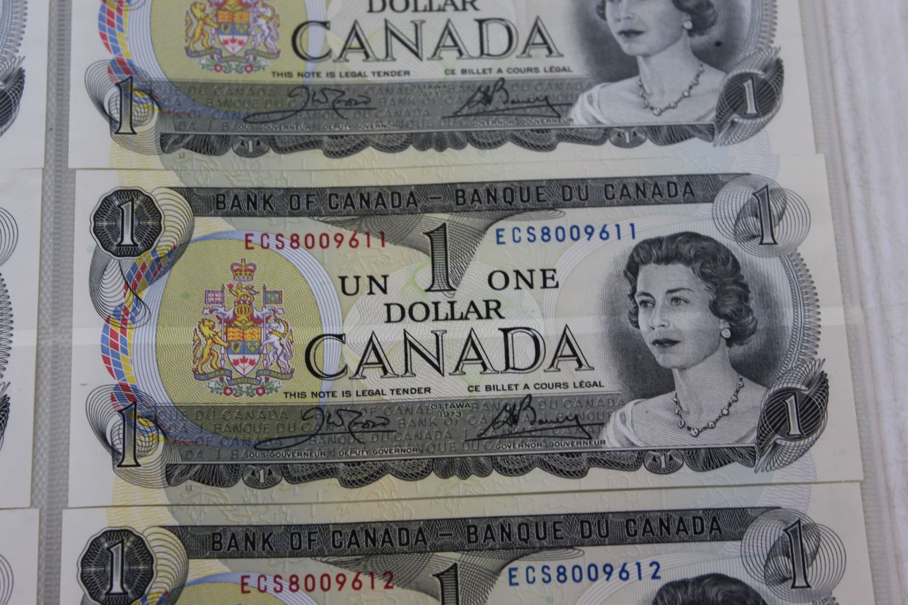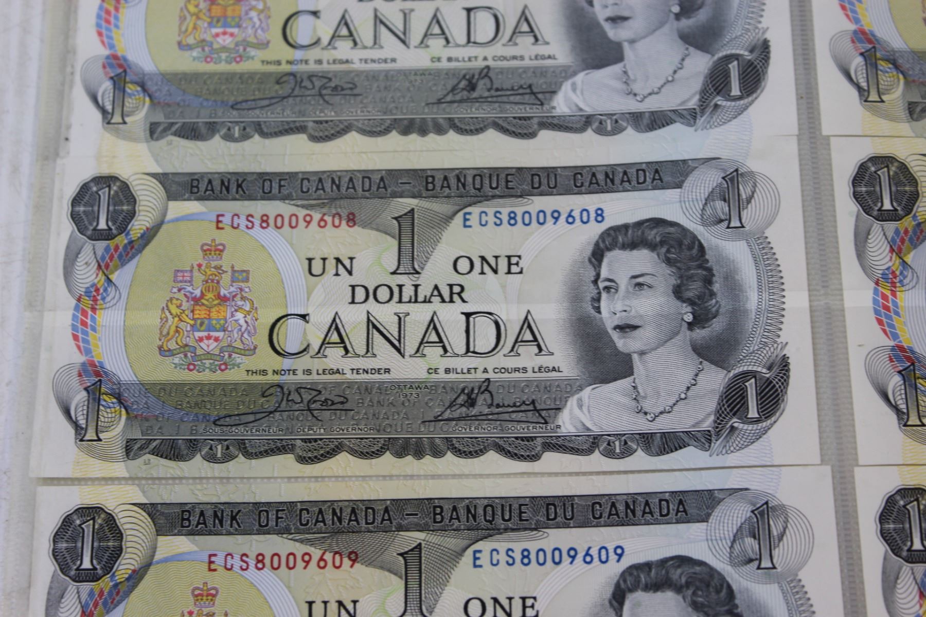 (6) Canadian $1.00 Bills in Sequence Order - #8009607-9612