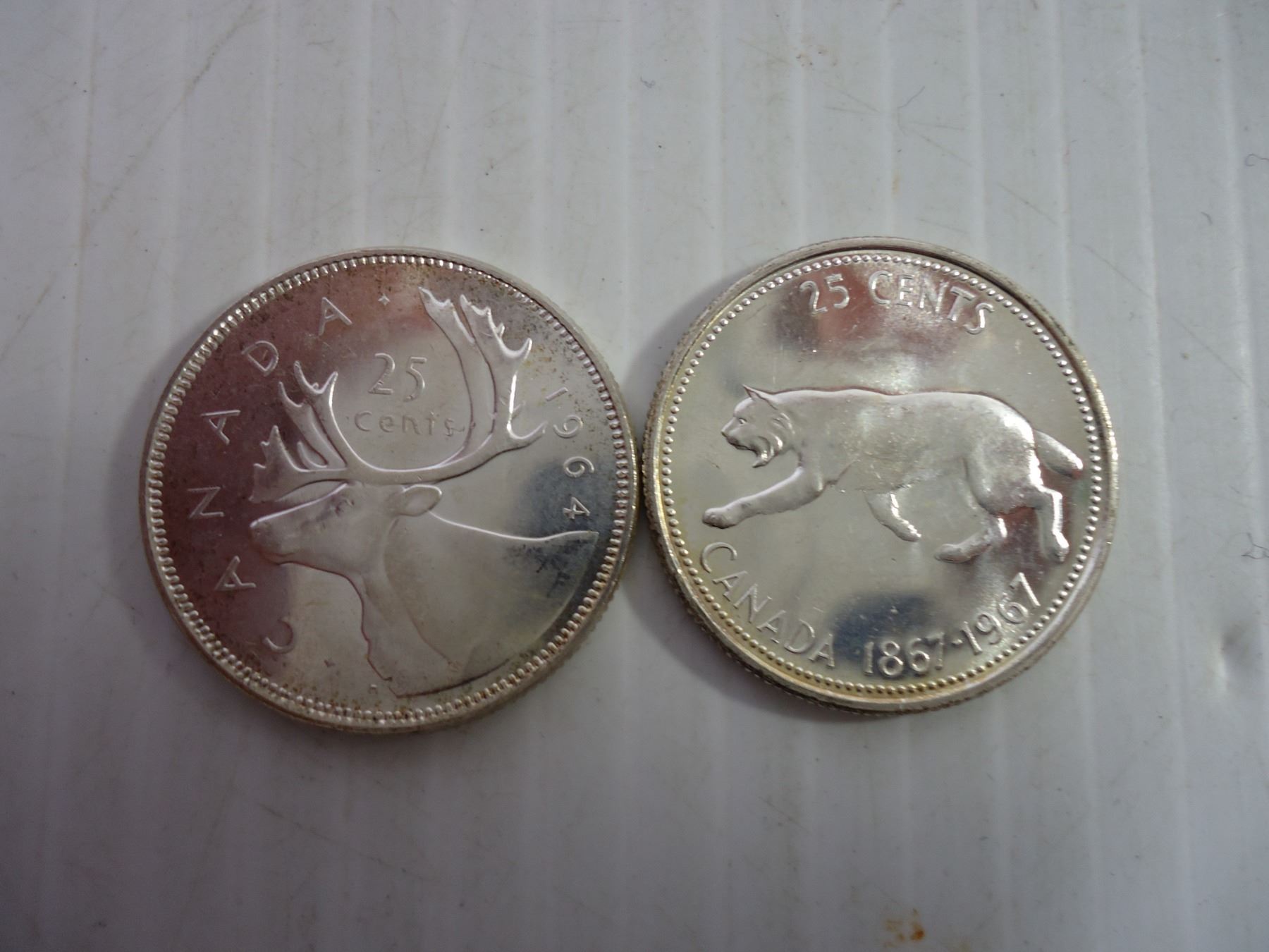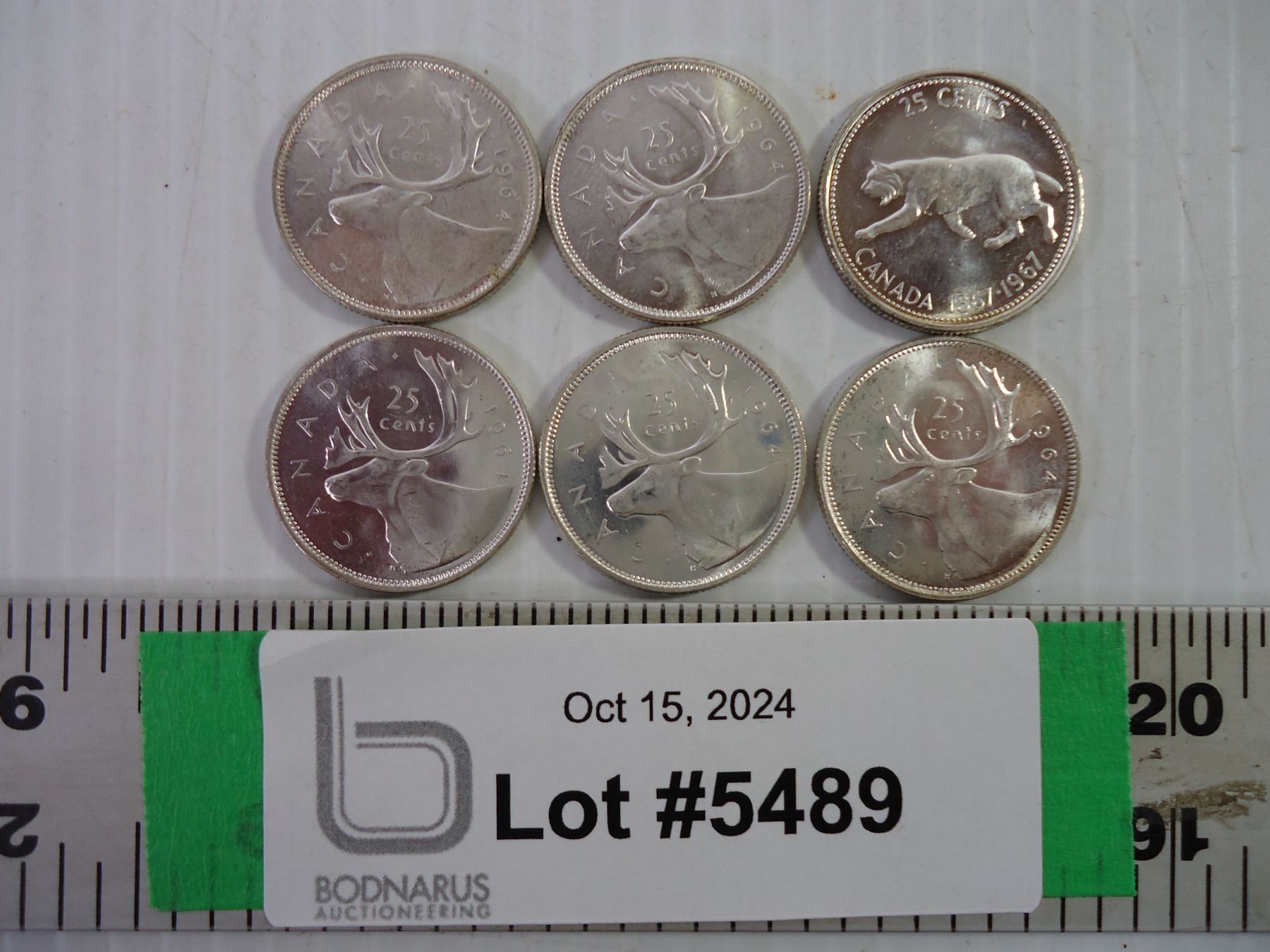 (6) Canadian Quarters-(5) 1964 and (1) 1967