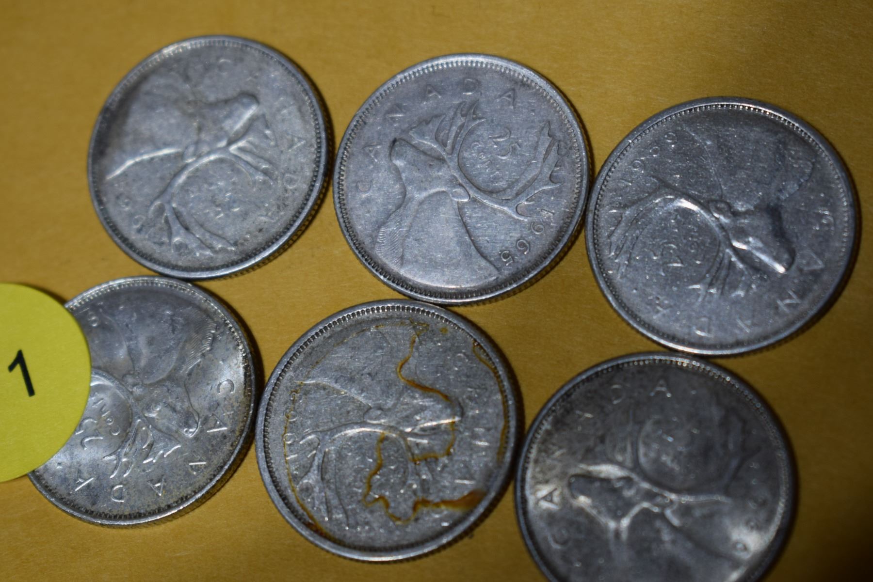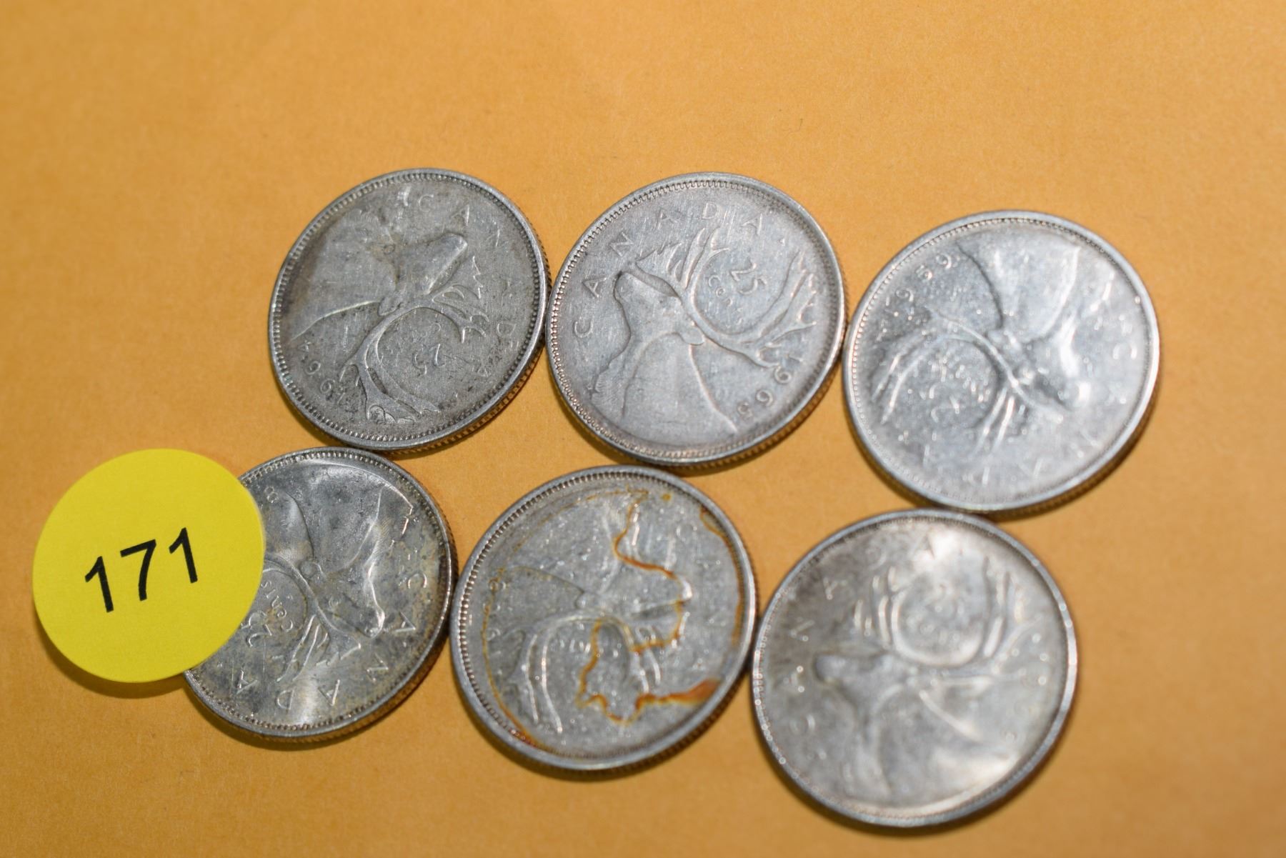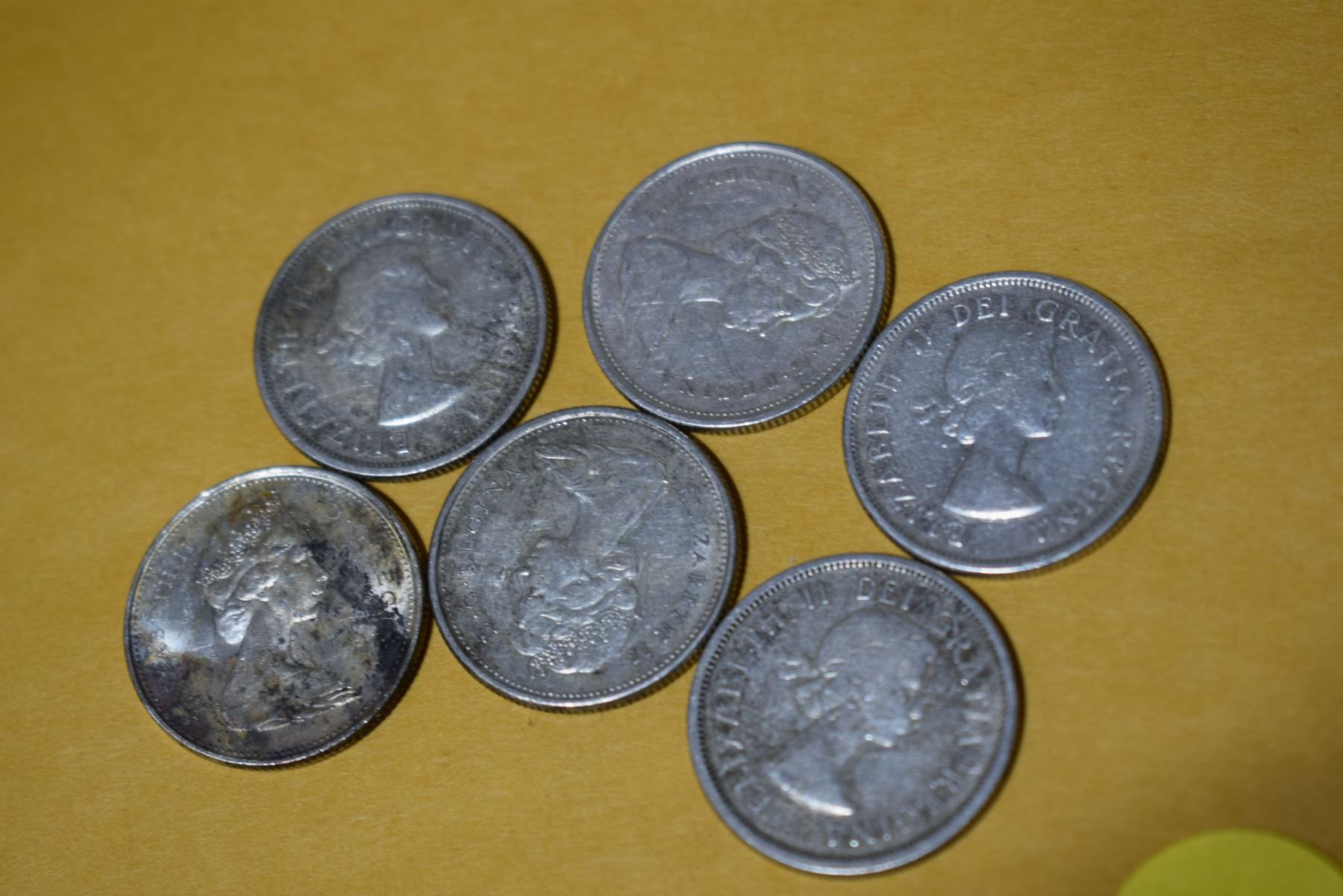 6 Canadian silver quarters