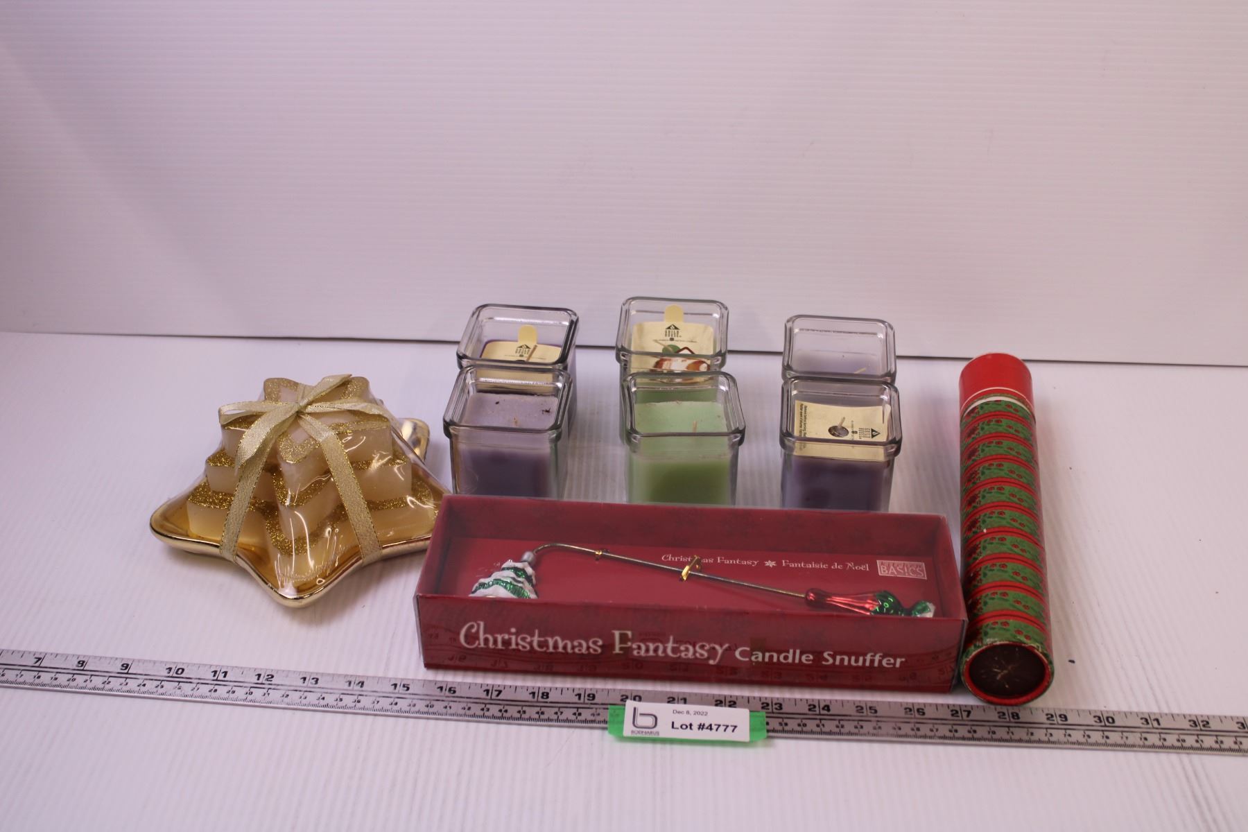 (6) Candles + Christmas Candle Snuffer, Tube w/ Matches and Star Soap