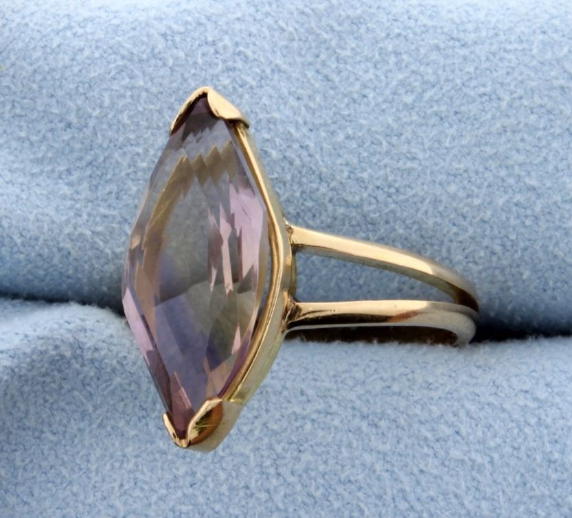 14k Yellow Gold. Smoky Quartz is 18x9mm Marquise shape, approximately 6 carats. Size 7 3/4. 5.0g