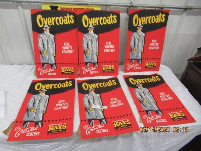 6 Cardboard Overcoat Adv. 22" x 14" - Vintage