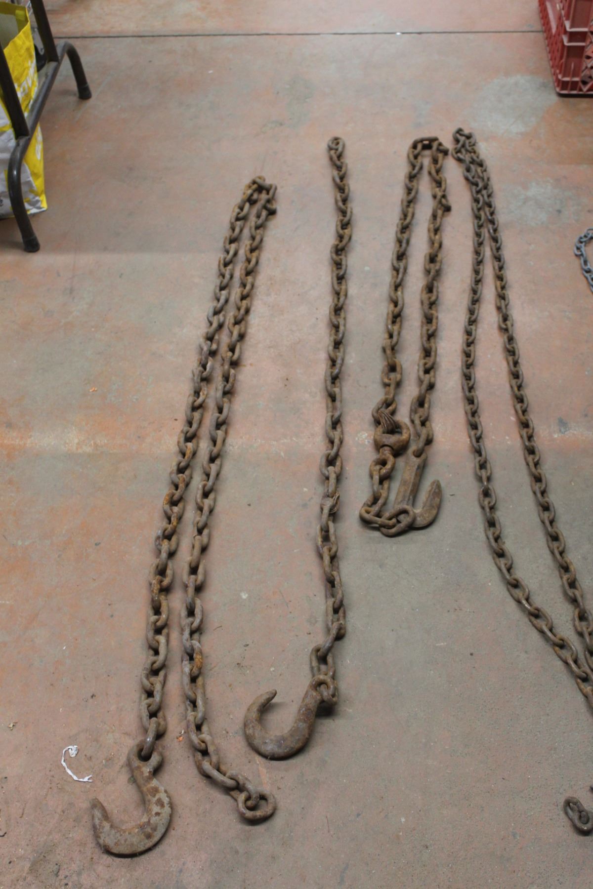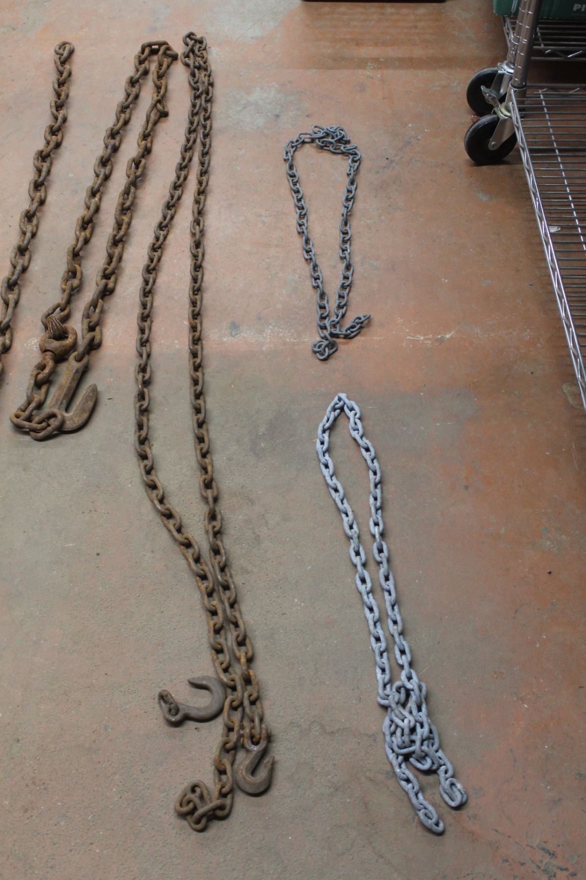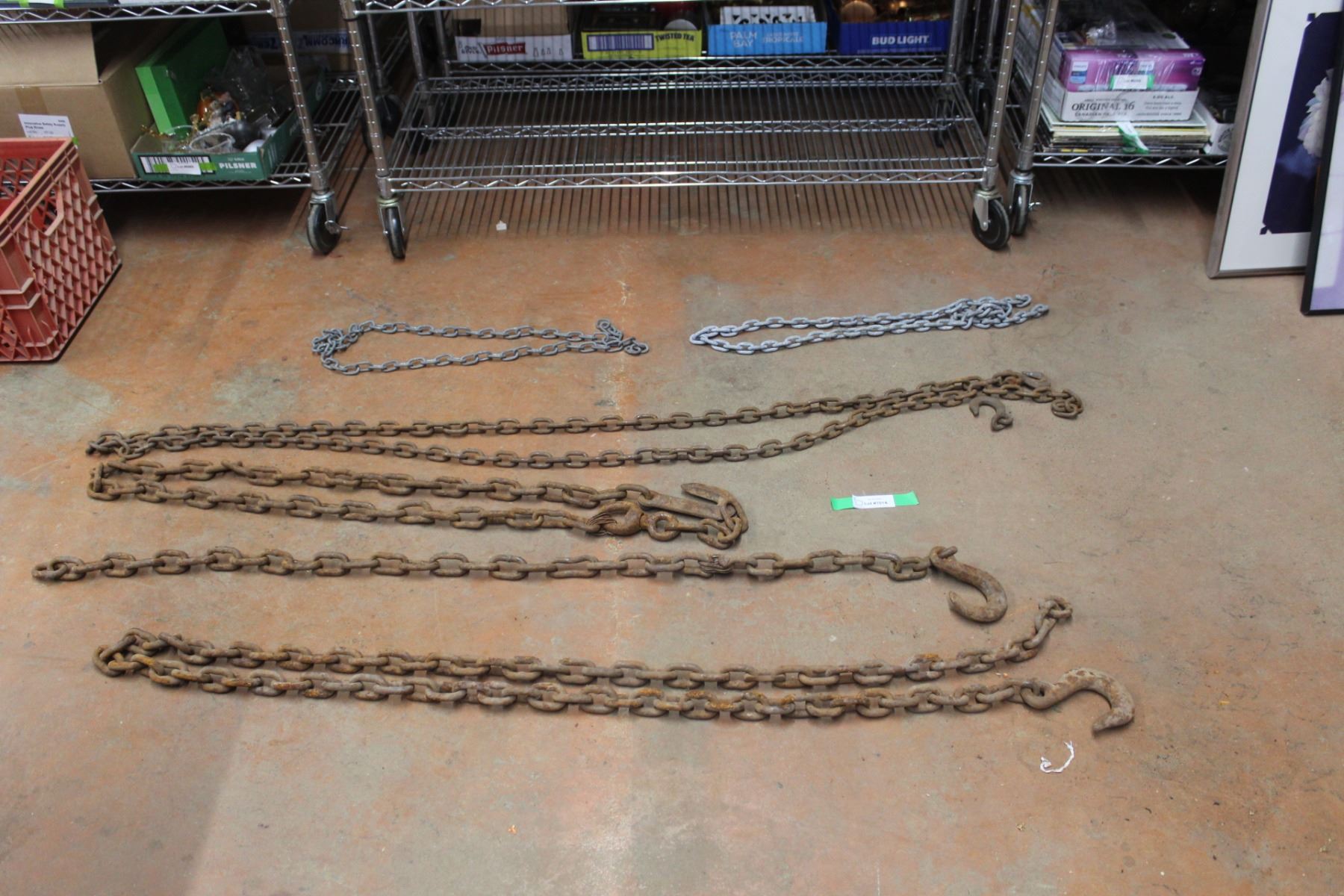 (6) Chains- Biggest @ 110", 132", 56", 84", Some with Hooks