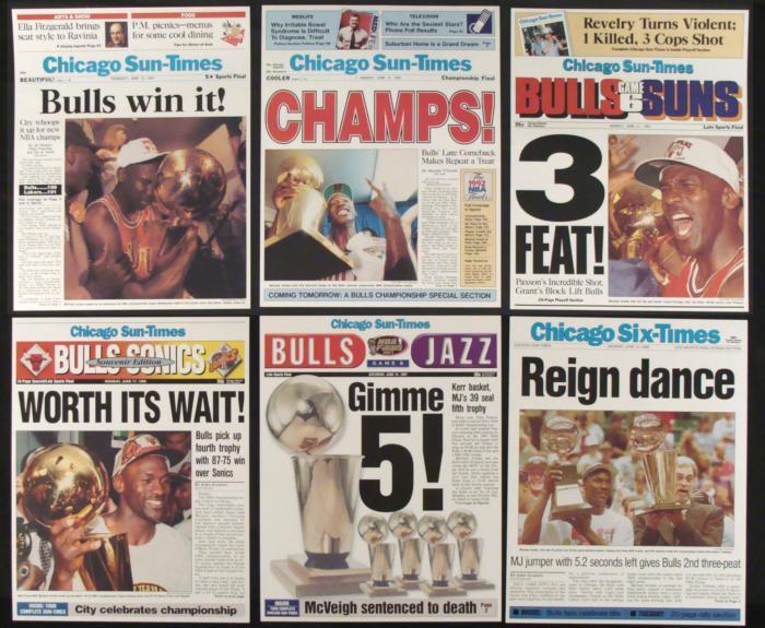 These were historic moments for Michael Jordan and the entire NBA league, and these newspapers really capture the excitement of one of the greatest sports teams in history.