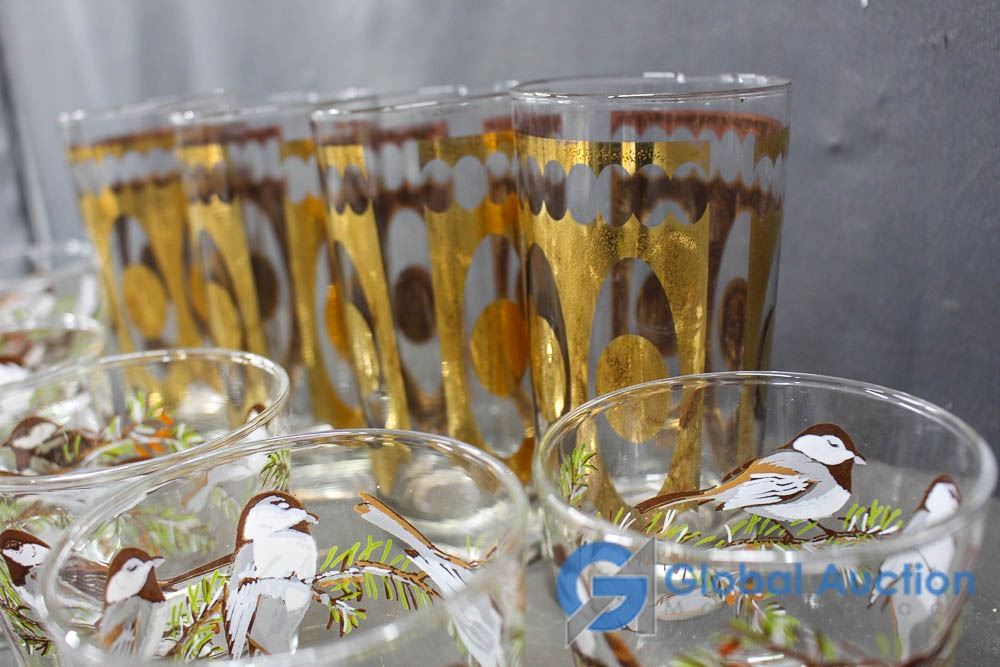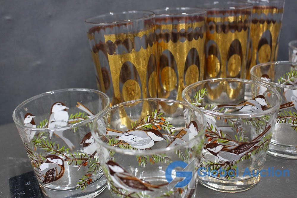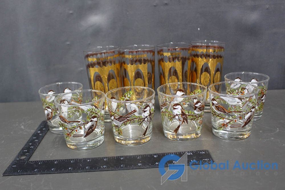 (6) Chickadee Glasses and (4) Gold Print Glasses