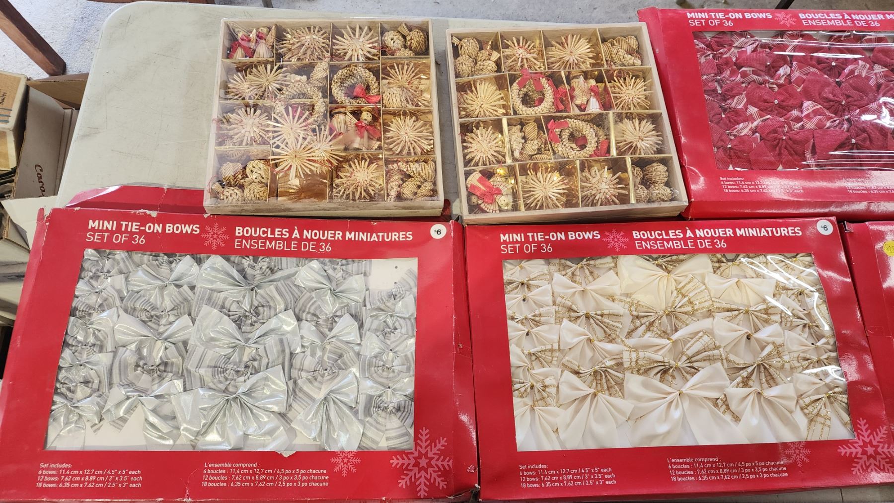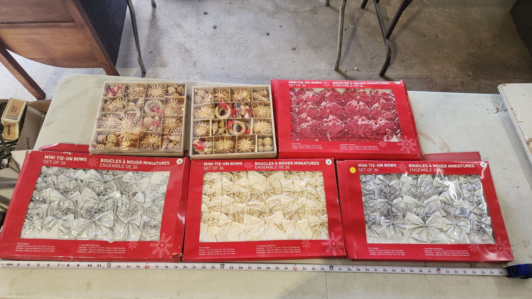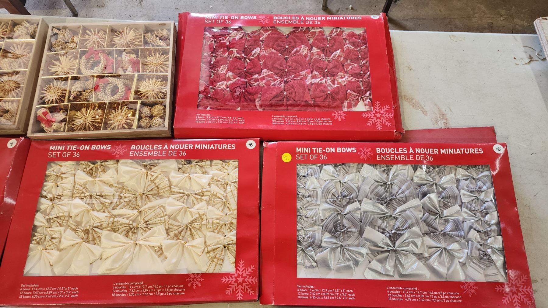 6 Christmas decorative bows and decorations - in box, appears unused - like new