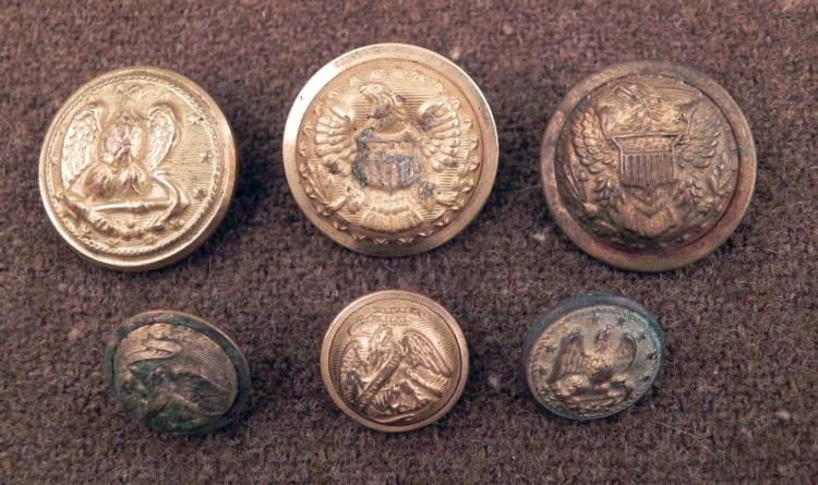 6 Civil War Eagle Gilt Coat Buttons Large, Small