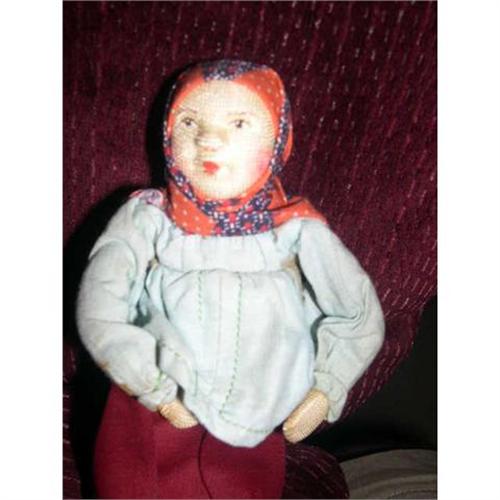 6" Cloth International Girl with Soviet Union Tag. Cloth label says Made in Soviet Union. She has straw shoes. Her legs seem to be loose but apparently they are attached as they are not falling out of the bottom of the pants. I see on the bottom of one sleeve there is some brownish stain and there is some soil to blue top. Doll comes from a smoke free environment. Buyer to pay $10 for shipping, handling, and insurance. Thanks for viewing.