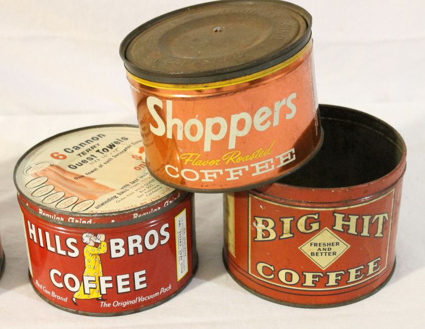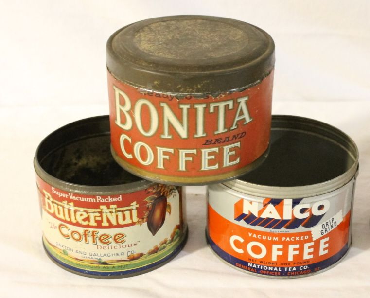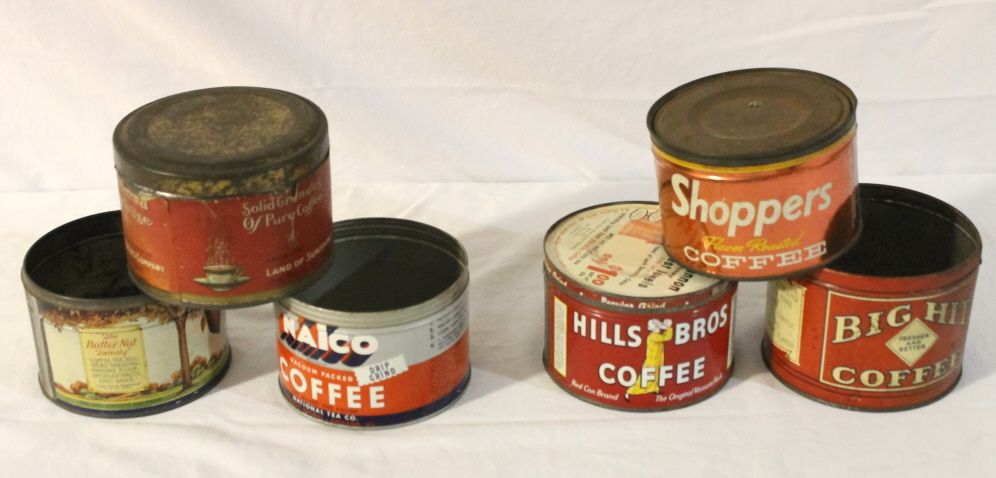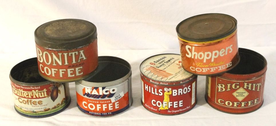 Bonita, Shopper, Hill's Bros., Big Hit, Naico, & Butter-Nut. All approx. 3" to 3 1/2" tall. 6x the money