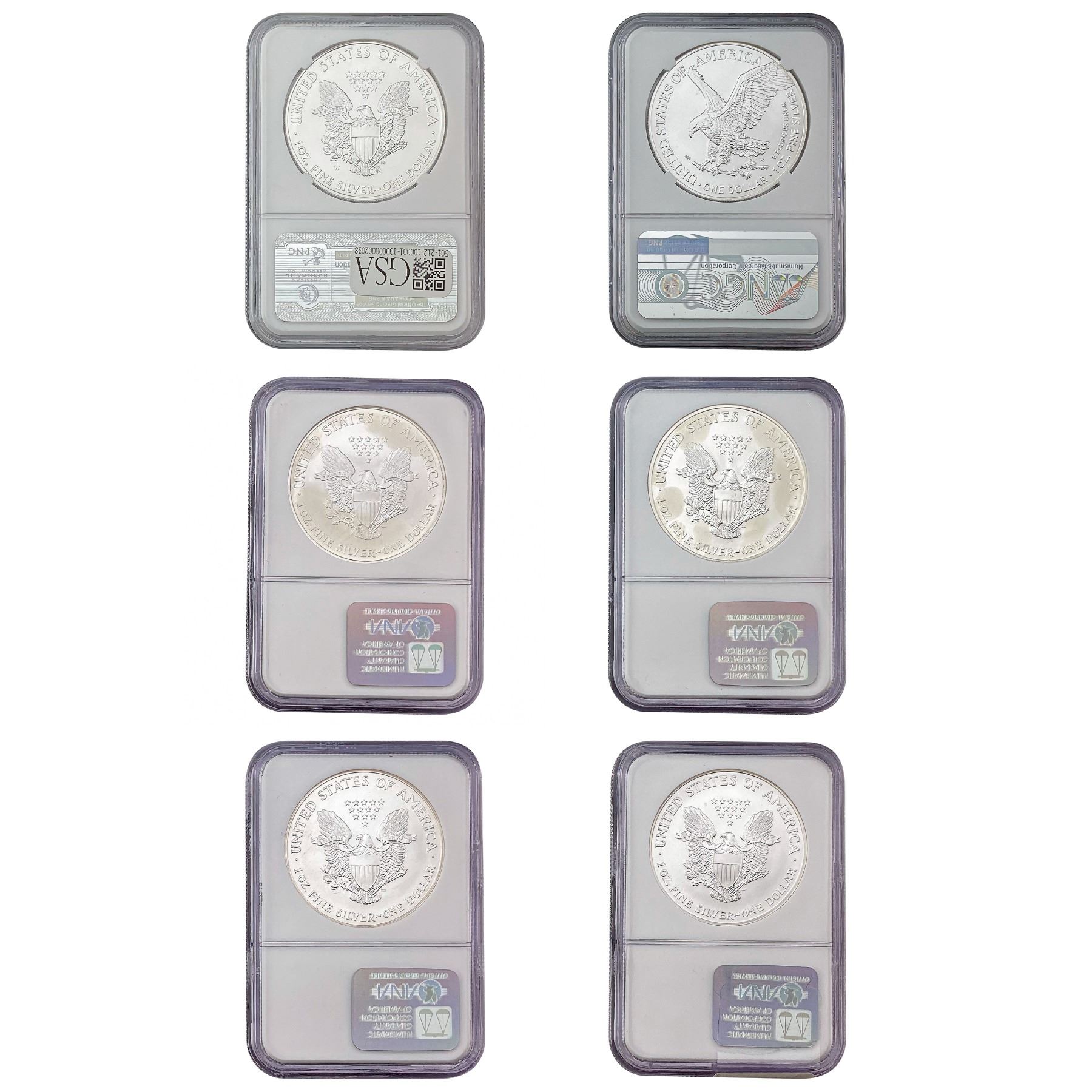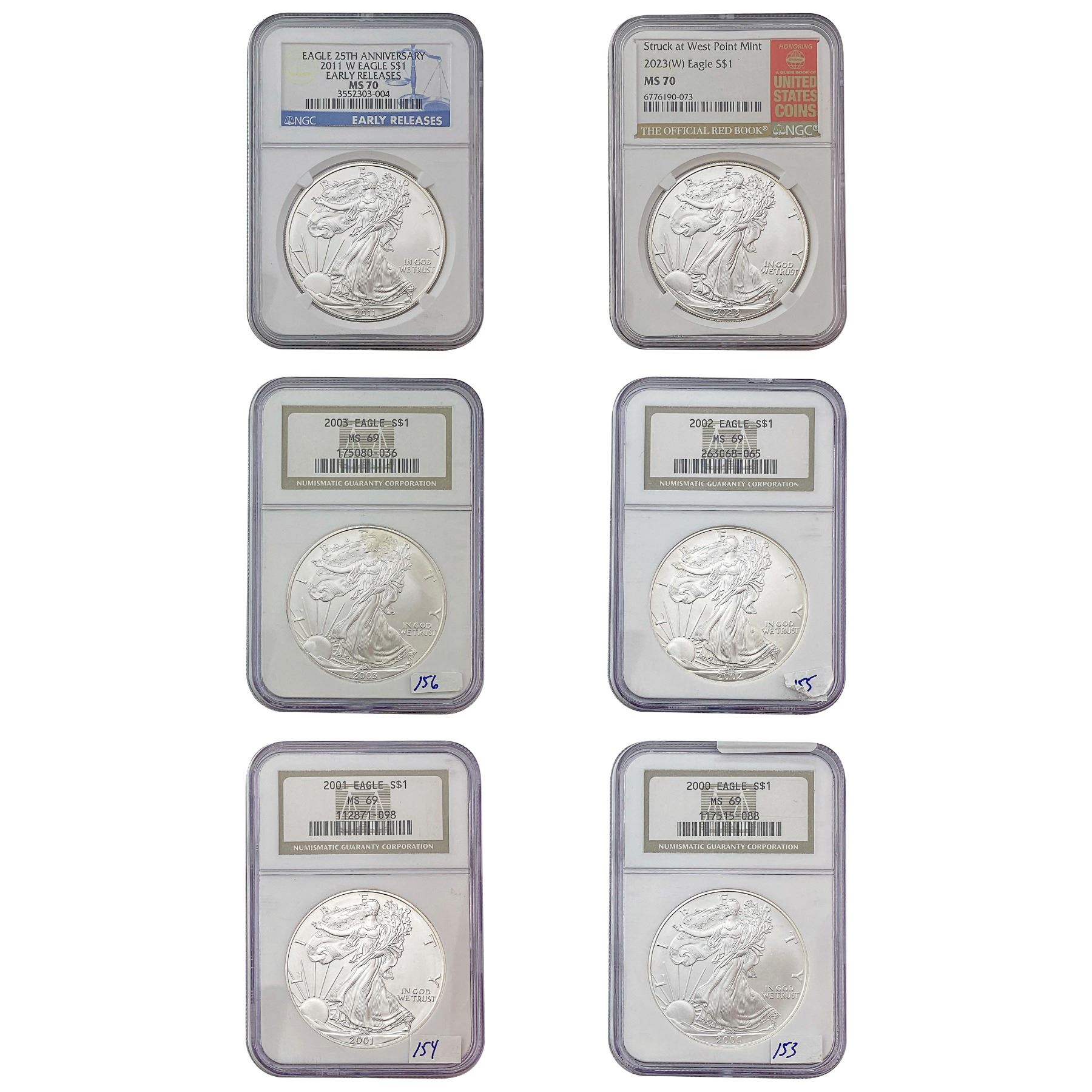 [6 Coins] 2000-2023 US Silver Eagle Lot NGC MS69/70