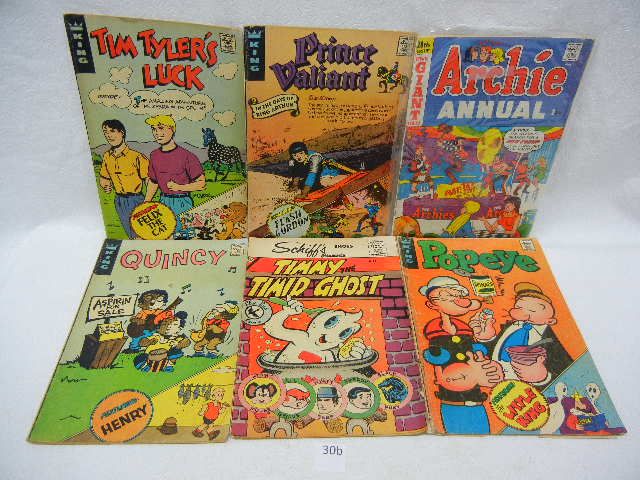 6 Comics: Archie Annual, Timmy The Timid Ghost, Tim Tyler's Luck, Quincy, Popeye, and Prince Valiant