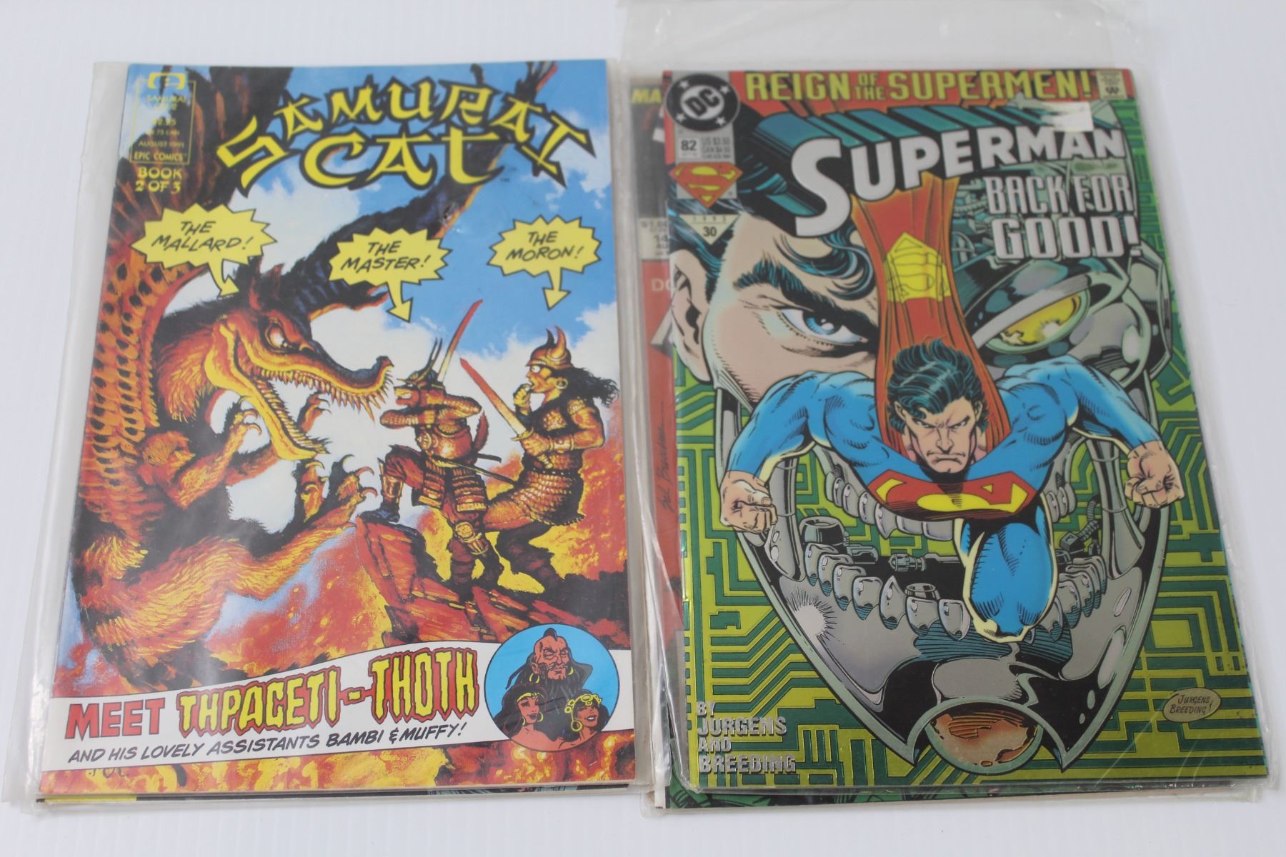 (6) Comics - Batman, Spiderman, Superman, Knights of Pendragon, Samari Cat