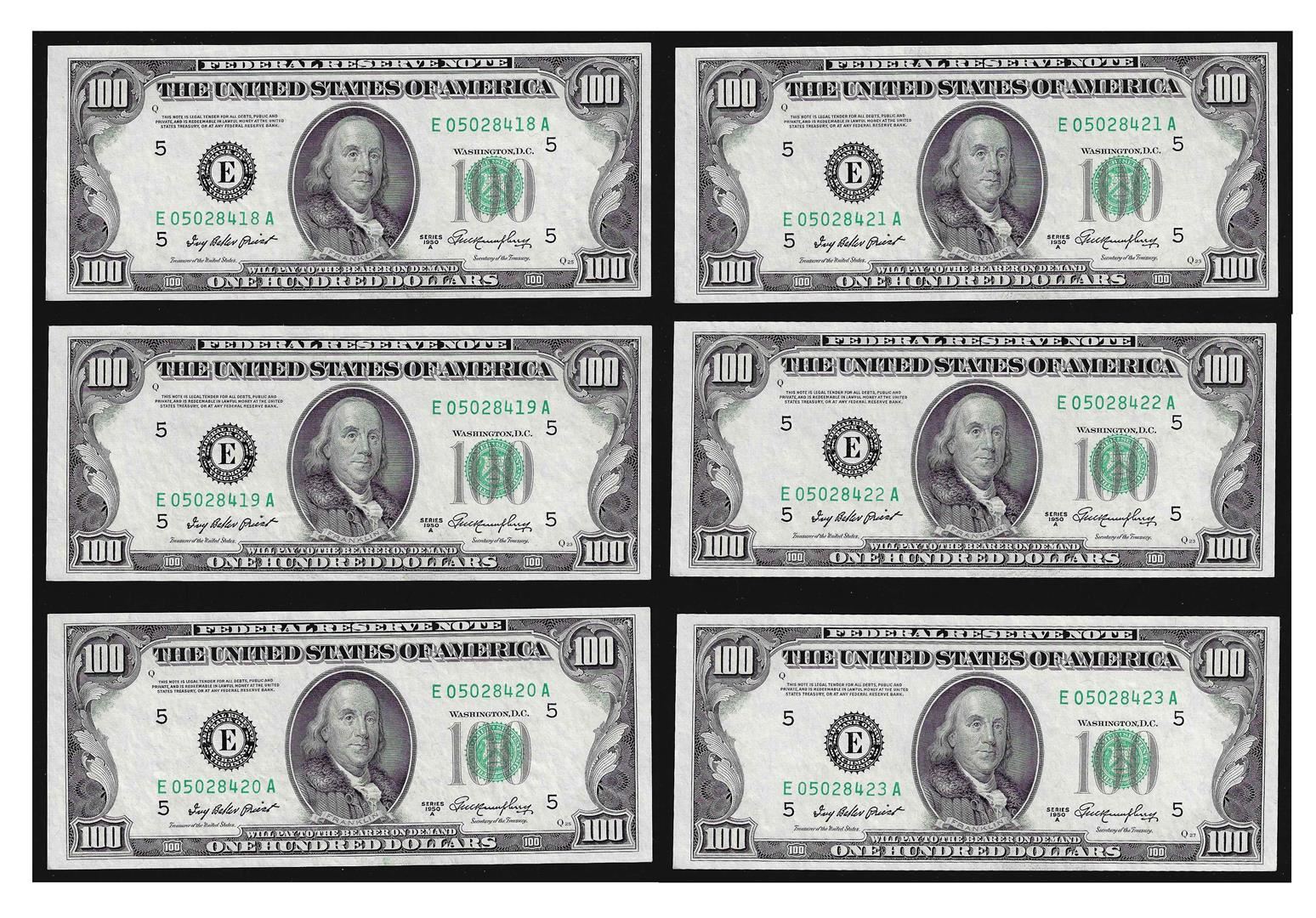 One lot of (6) Consecutive 1950A $100 Federal Reserve Notes Richmond.