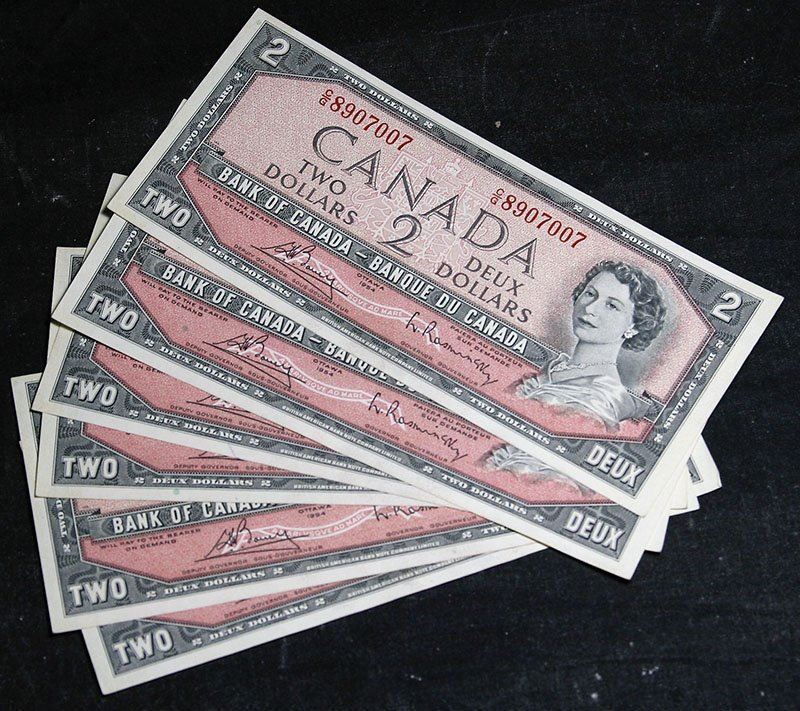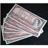 6 Consecutive 1954 Bank of Canada Bank Notes - Modified Portrait - Bouey/Rasminsky