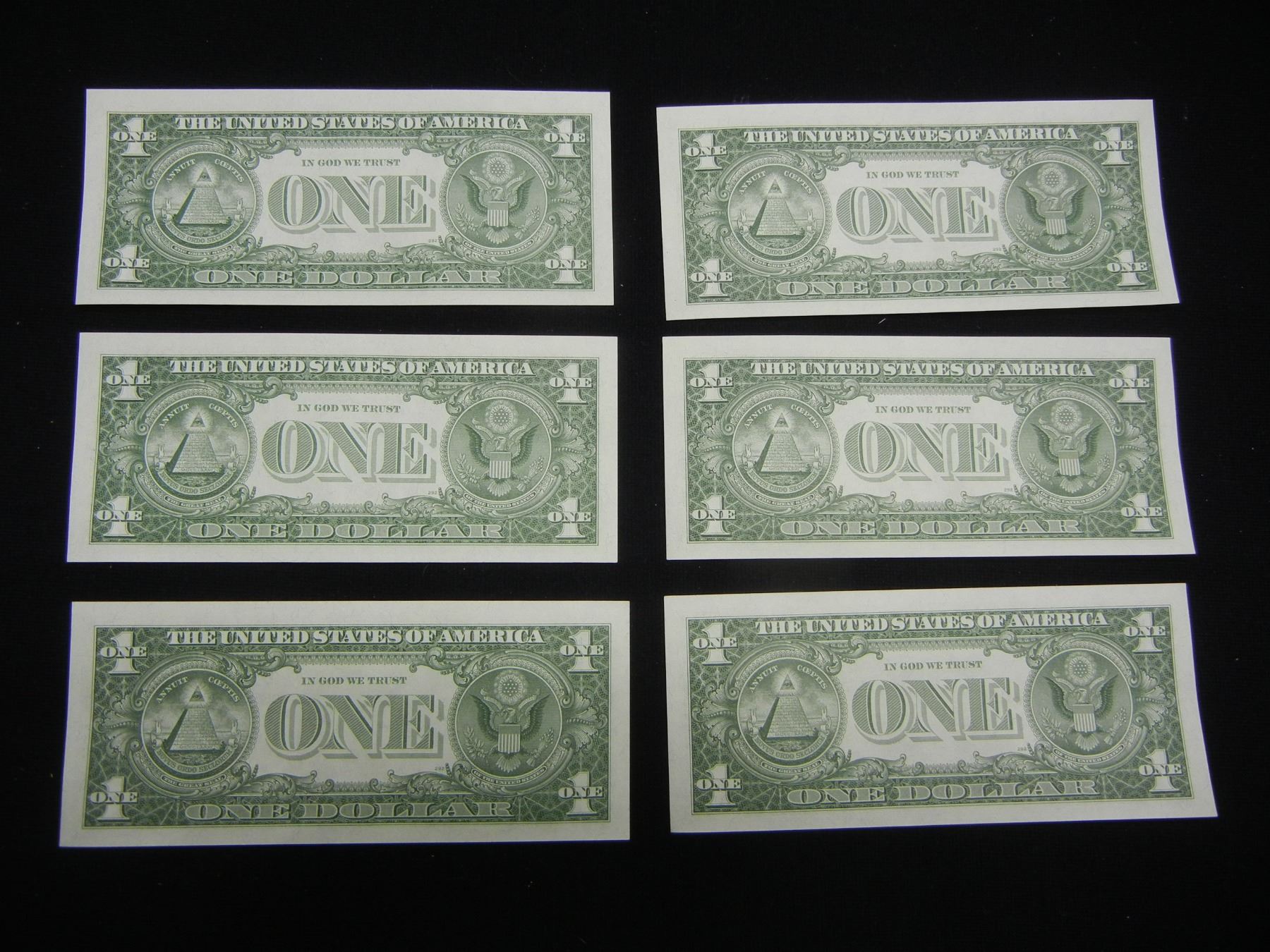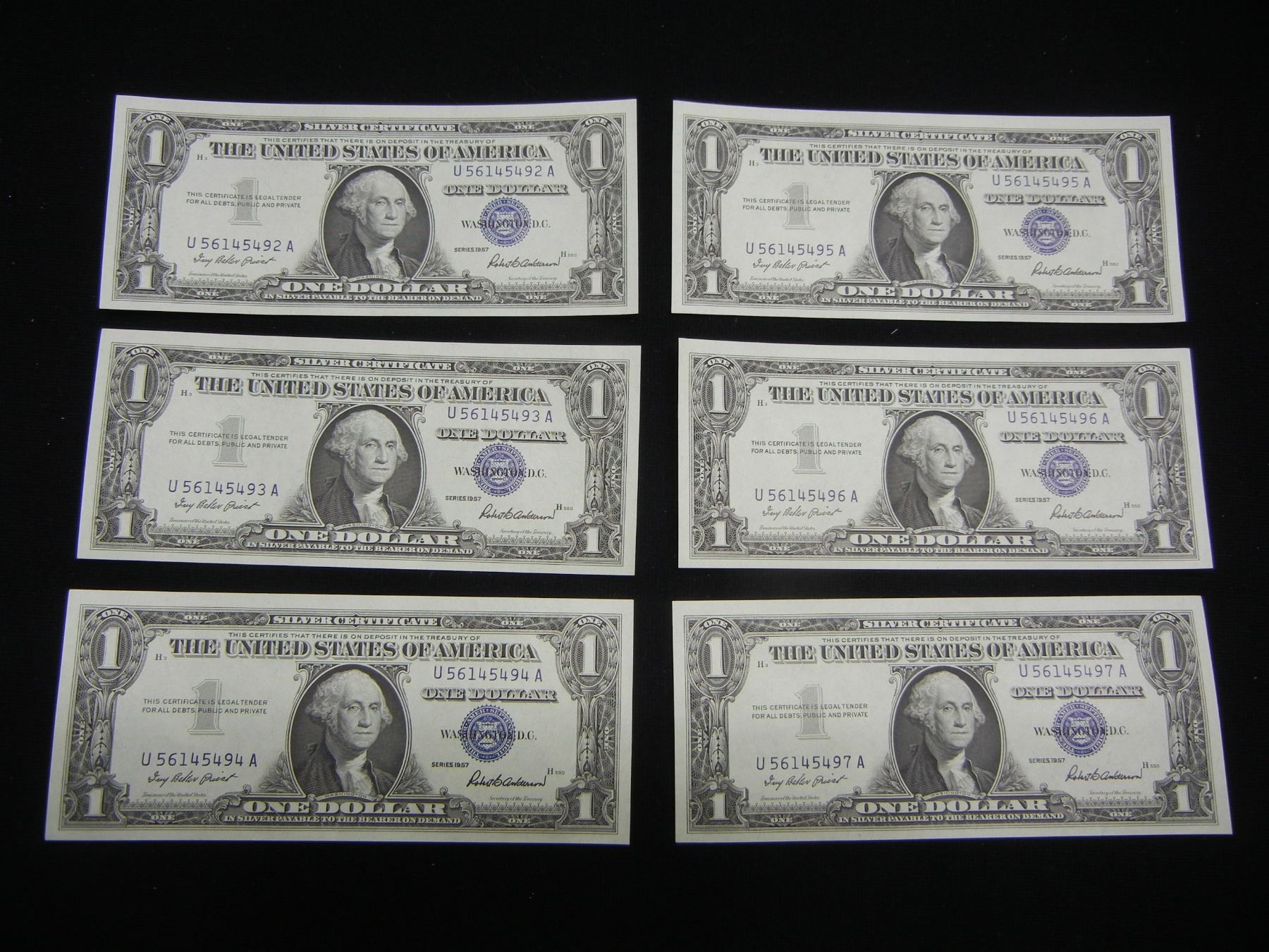 (6) Consecutive Serial Number 1957 $1.00 Silver Certificates High Grade