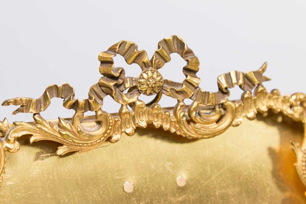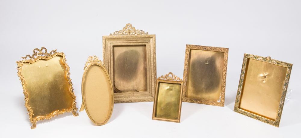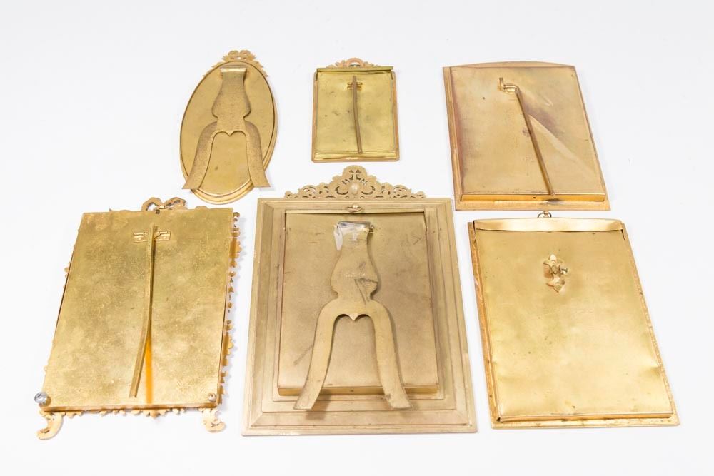 1 oval, 5 rectangular. 1 enamelled. Largest approx. 9" H. From an Edgewater, NJ estate. Some dents.