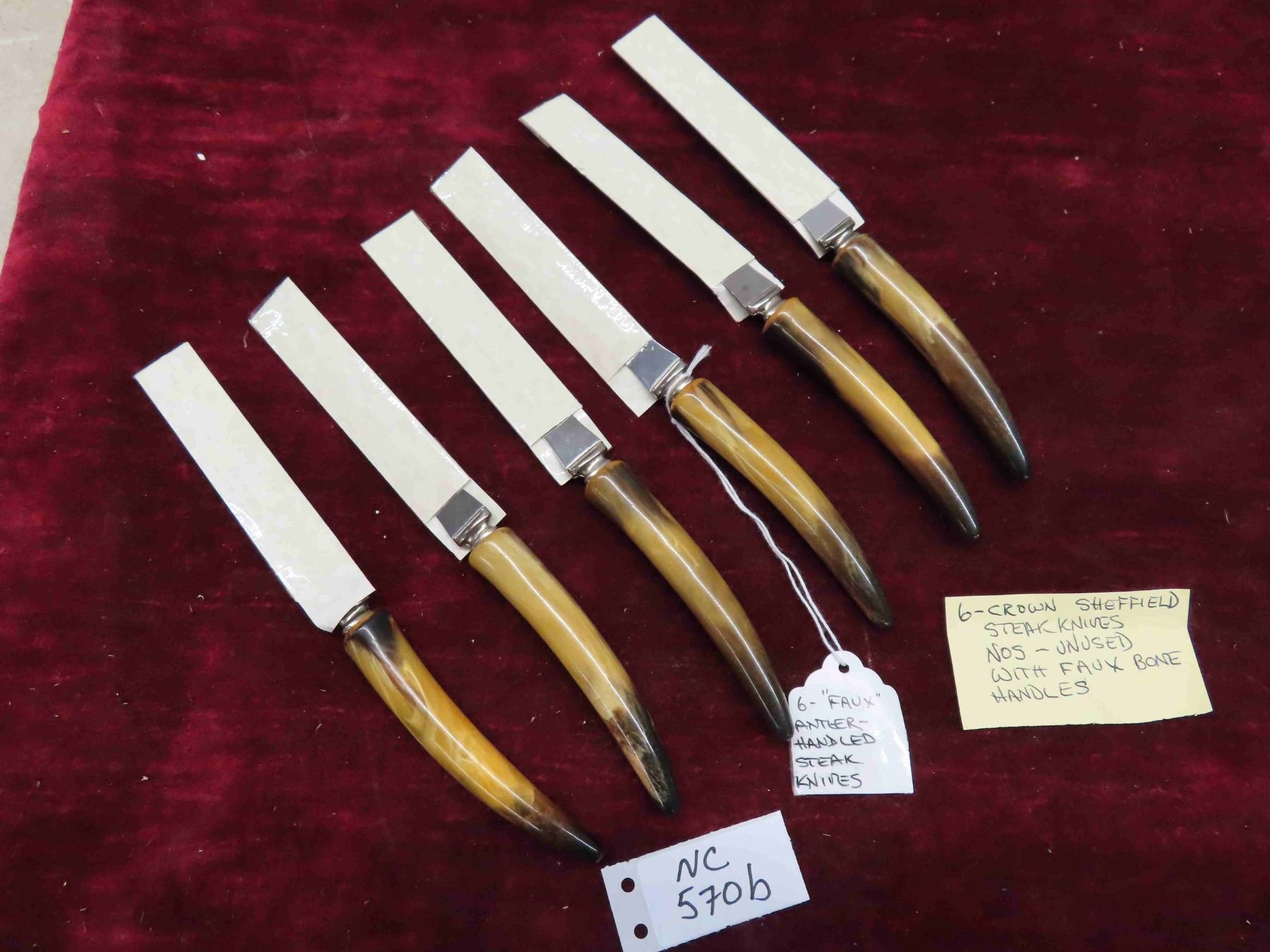 6 Crown Sheffield Steak Knives (Unused) with Faux Bone Handles