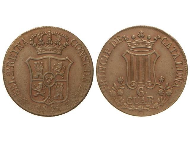 6 Cuartos. 1846. BARCELONA. Acuñación algo floja en reverso. Flores de 7 pétalos. Cal-698. MBC+.