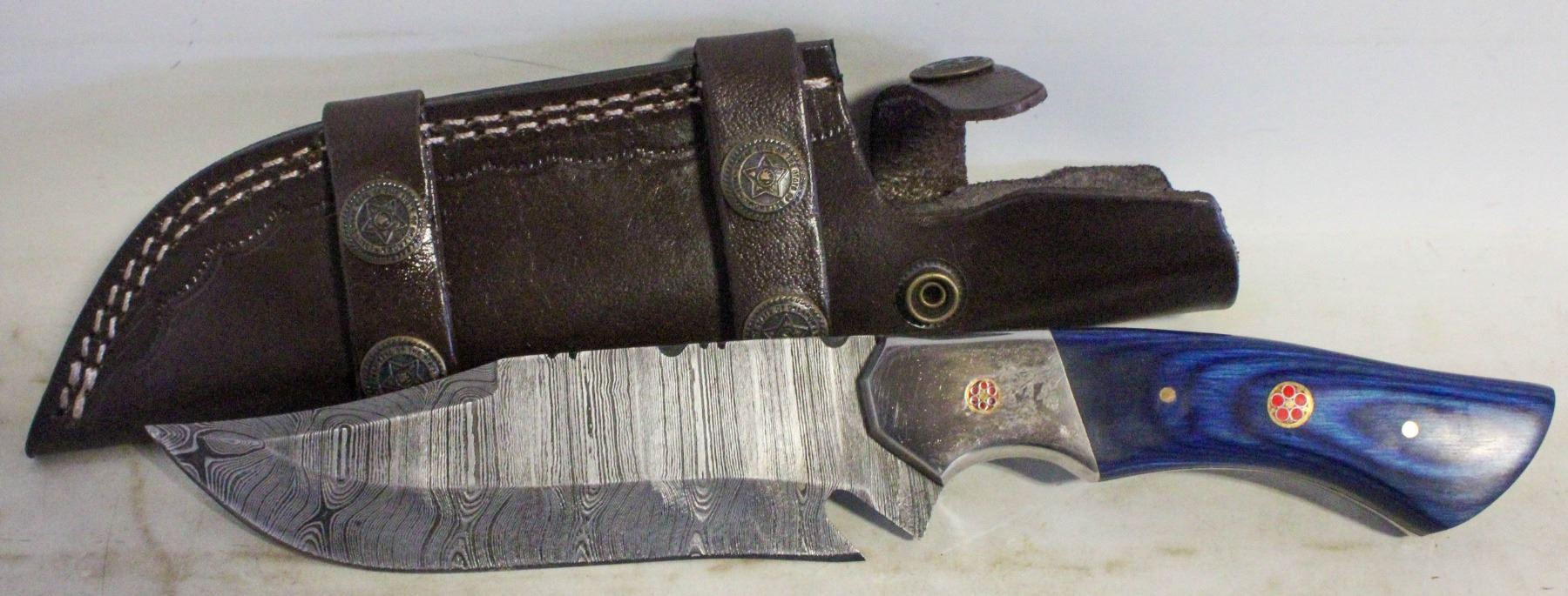 6" DAMASCUS HUNTING KNIFE W/ LEATER CASE
