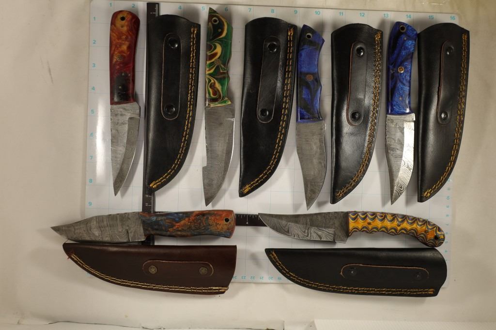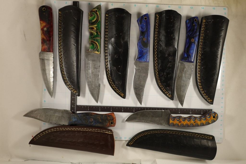 SHEETHS. 1- 7 3/4", 4-8" & 1-8 1/2". MAKE GREAT GIFT, KITCHEN, HUNTING KNIVES, ETC. SOME RUST NOTED ON A KNIFE
