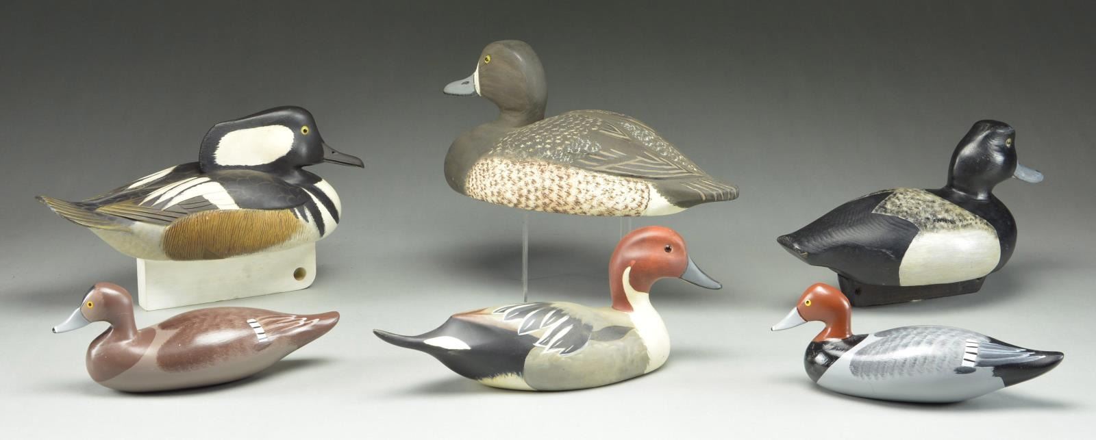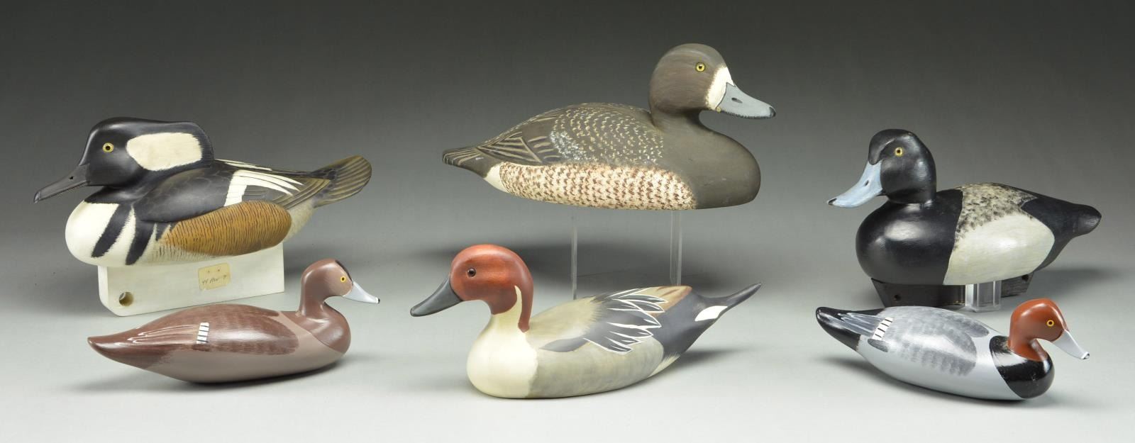 6) GEORGE W CSEFAI No. 033 HOODED MERGANSER DECOY. Overall: 13". Height: 8". CONDITION: very good.
