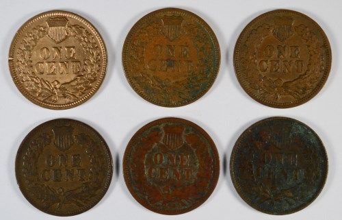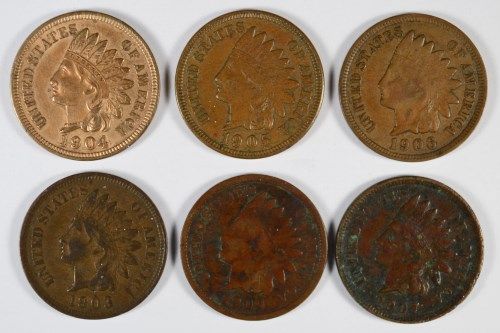 6 DIFFERENT INDIAN HEAD CENTS (03,04,05,06,07,09) GOOD-XF