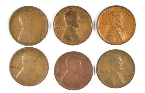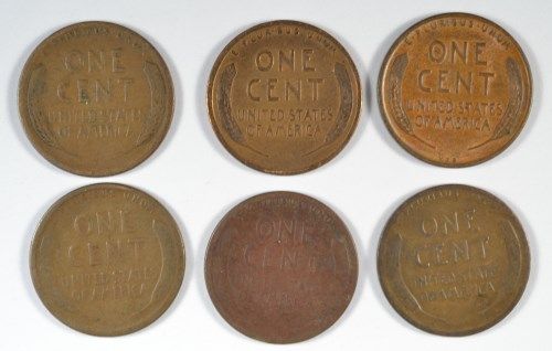 6 DIFFERENT LINCOLN CENTS (09 VDB,09,10-S,11-D,12-D,12-S) GOOD-UNC