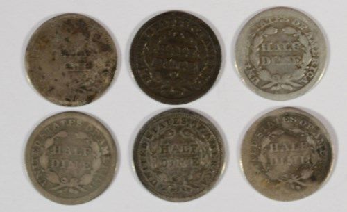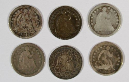 6 DIFFERENT SEATED HALF DIMES ( 48, 50-O, 53, 54, 55, 56) AG-VG