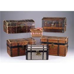 6 DOLL TRUNKS. Assortment of doll trunks with goodies inside. CONDITION: Overall good to very good. JL 1-2756-1100