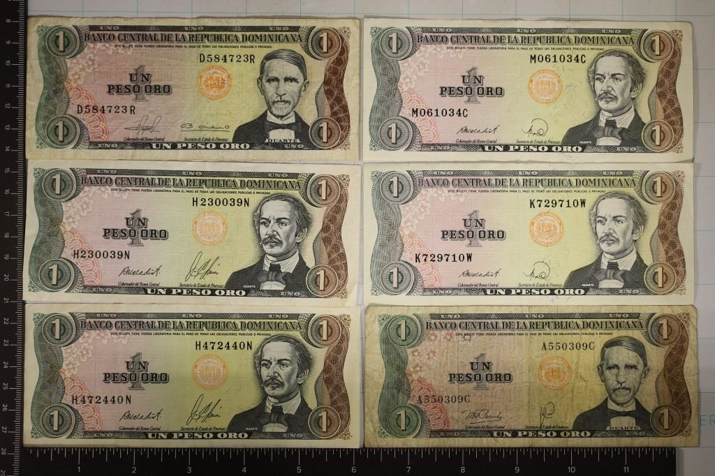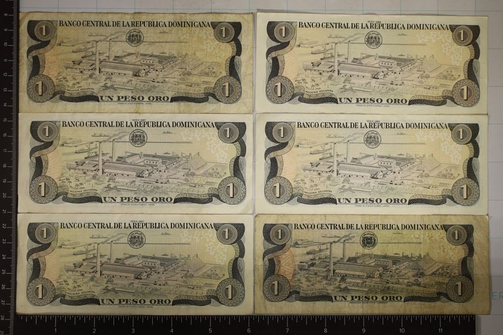 6-DOMINICAN 1 PESO BILLS: FOUR ARE CRISP