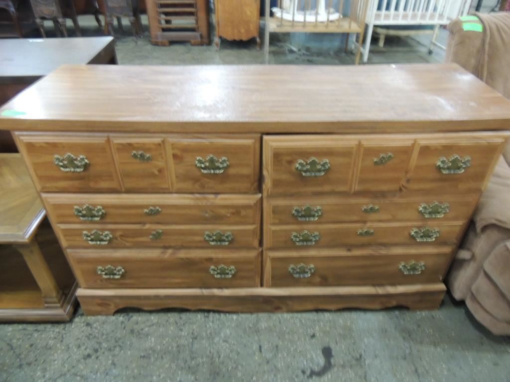 VINTAGE DRESSER, WOODEN DRESSER, HARDWARE AS SHOWN SEE PHOTO FOR MORE DETAILS.
