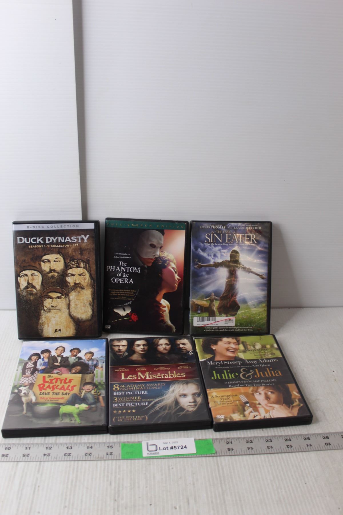 (6) DVDs/Sets- Duck Dynasty Seasons 1-3, Les Miserables, Phantom of the Opera, Misc.