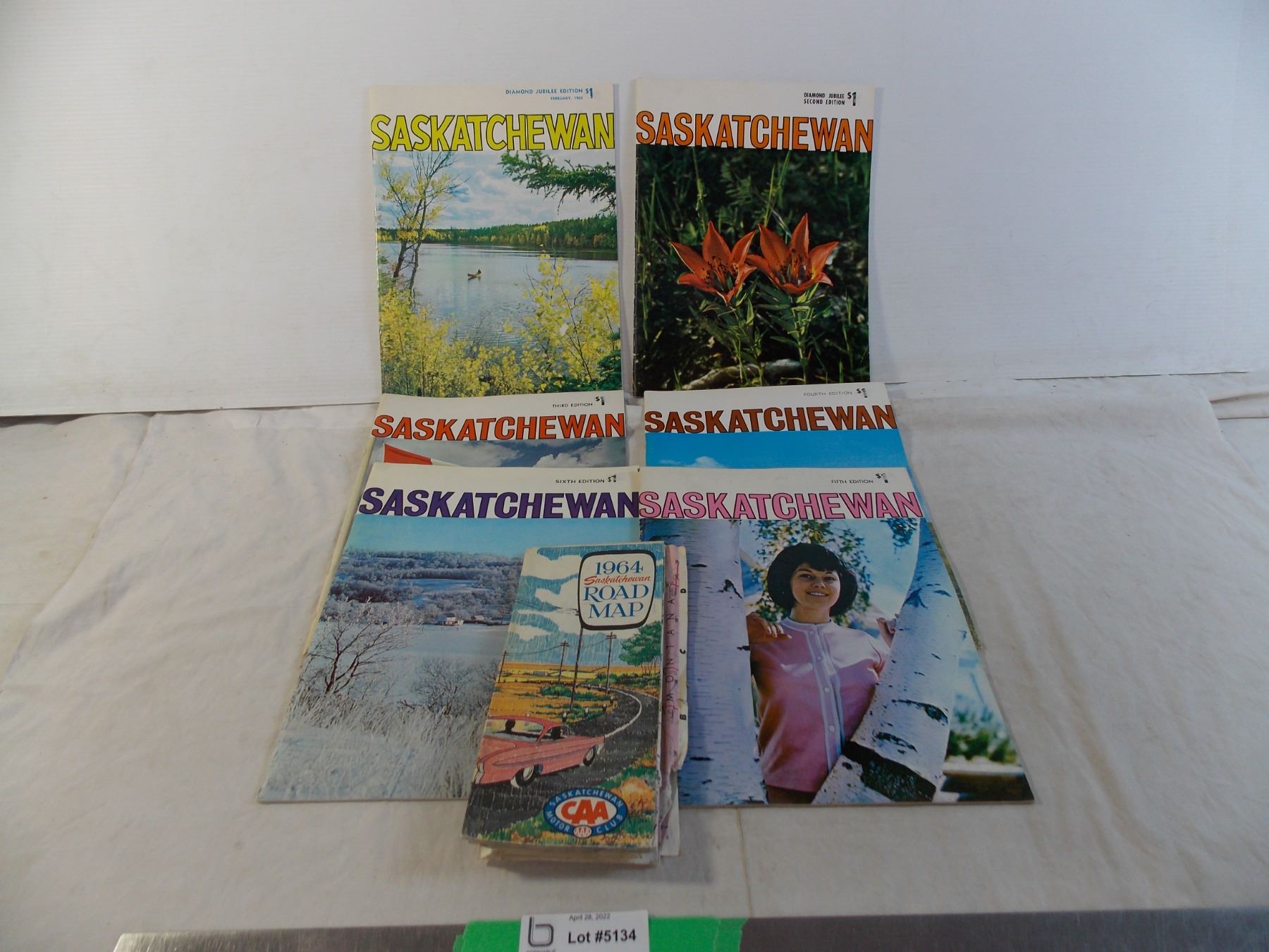 (6) Diamond Jubilee Saskatchewan magazines + 1964 Sask Canada Map