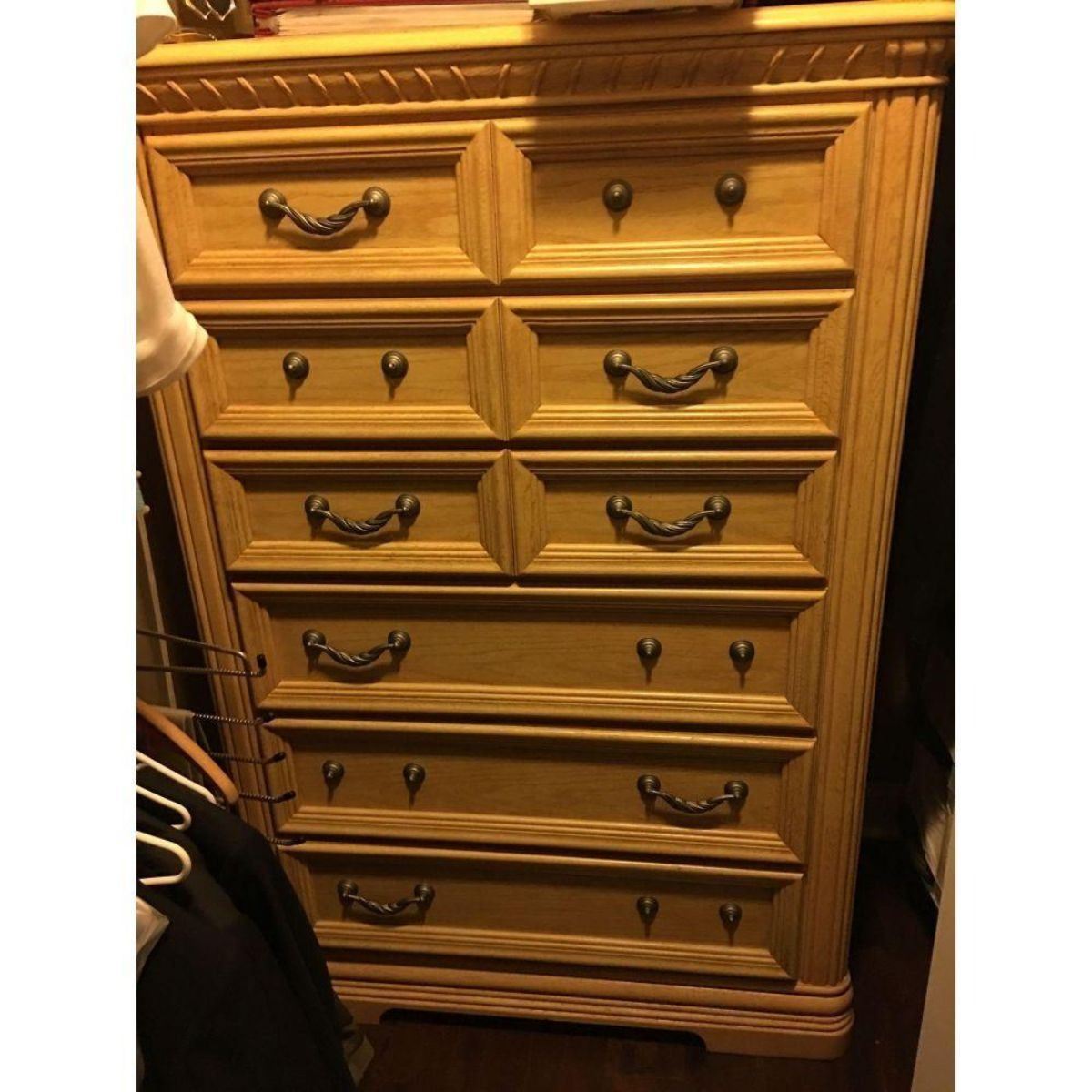Replace missing handles with handles of your own design preference. Solid wood, 6-drawer dresser. Part of matching bedroom set. Each piece sold separately.Â