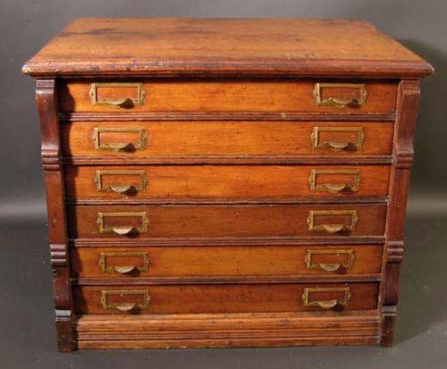 6 drawer file cabinet/Williantic Linen Company - 26" x 21" 19.5", given to store owners for filing/file drawer pulls, with card inserts, ex. cond.