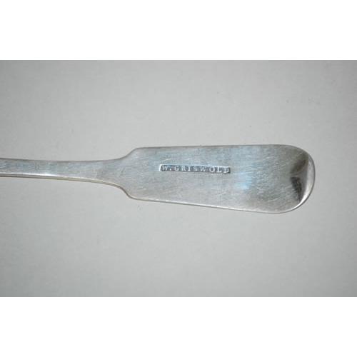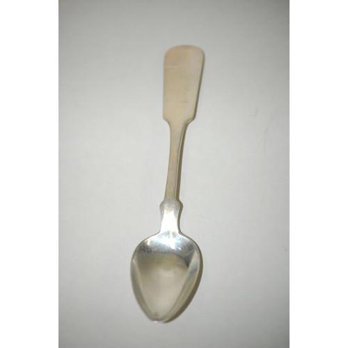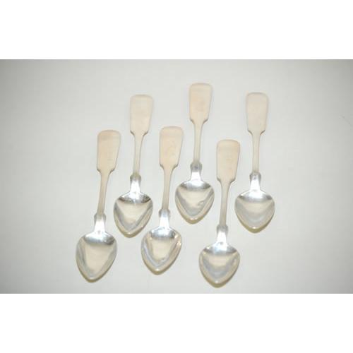 (6) EARLY AMERICAN SILVER TEASPOONS - SET (6) 5 3/4" WILLIAM GRISWOLD PORTLAND ME SILVER TEASPOONS W/ FIDDLE HEAD TYPE PATTERN-MONOGRAMMED (4 TROY OZ.) - WEAR, DENTS