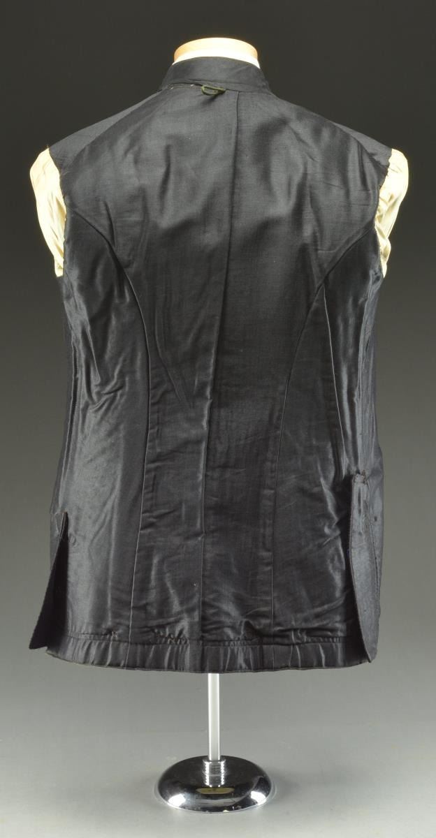 3) LIEUTENANT COMMANDER. A fine early M1895 US Navy Lieutenant Commander's Undress Pattern uniform coat. Navy blue coat with black mohair trim along the edges of the front & back. The collar has finely executed, silver bullion oak leaves on either side along with equally well done silver bullion fouled anchors on each side. 6 Button front with plain black composite buttons. Each sleeve has 2 gold bullion 3/4" stripes & a 3/8" stripe along with a gold bullion star. There are 2 inside pockets & a black polished cotton lining. CONDITION: very light wear throughout.