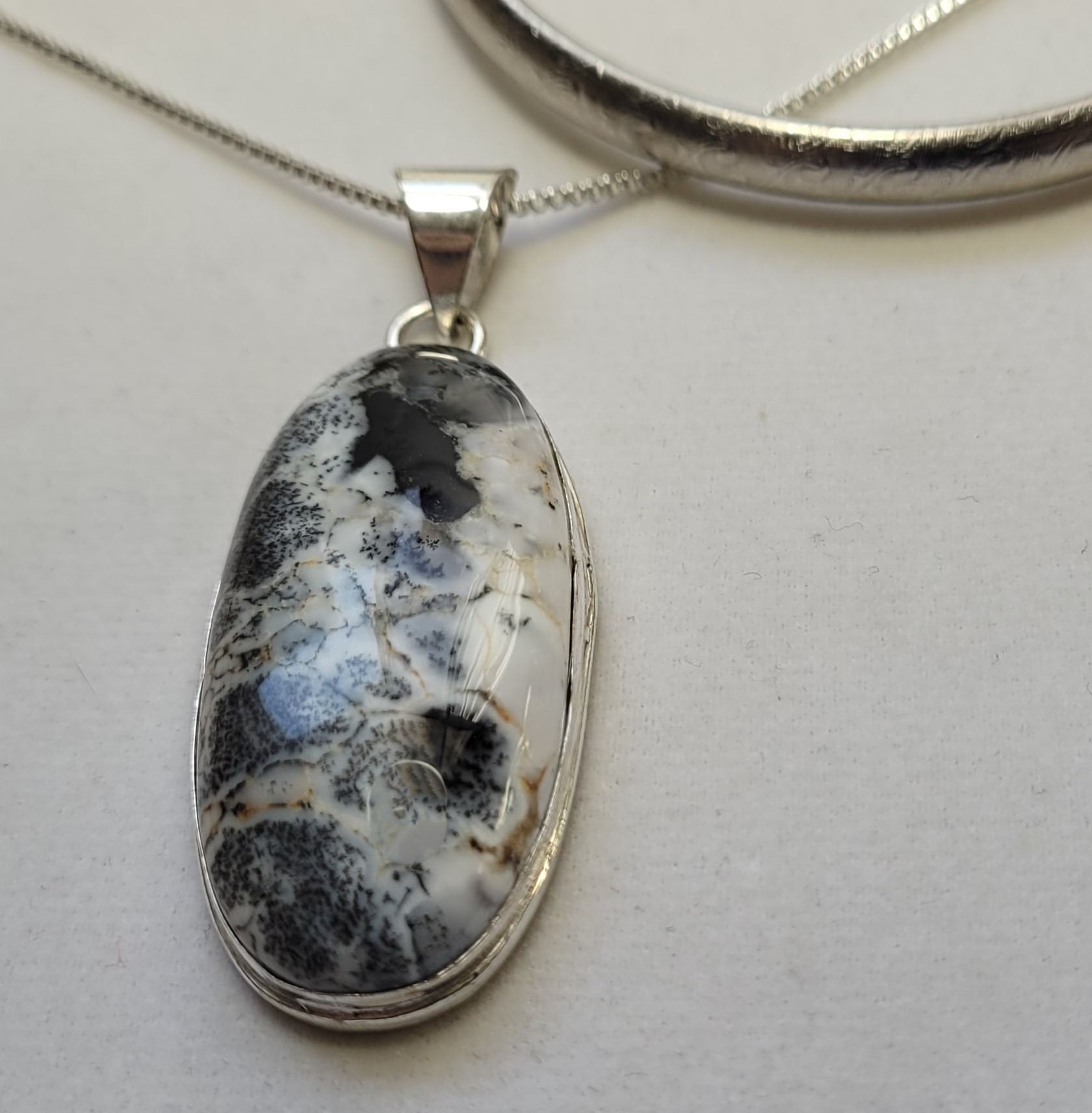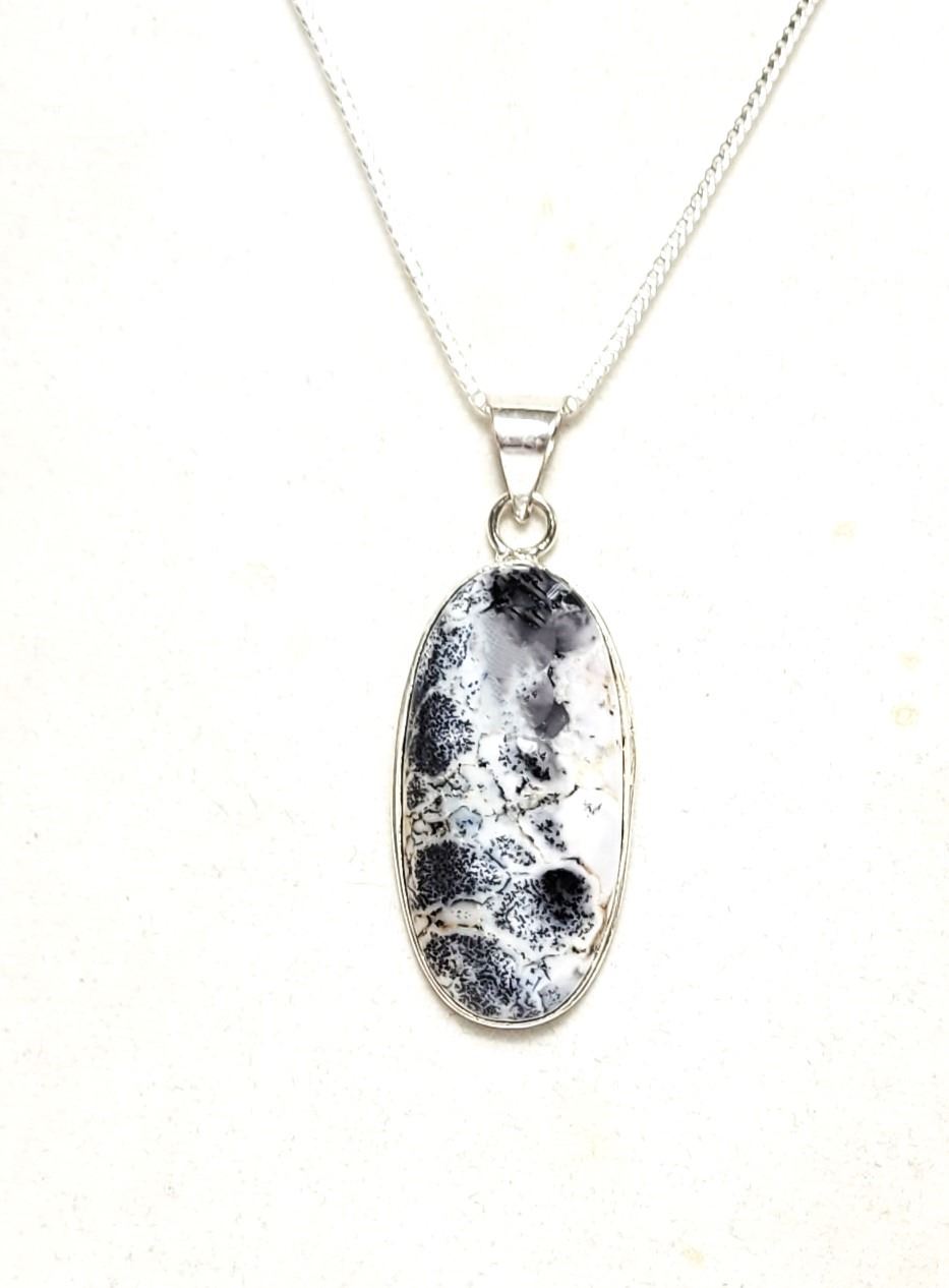 6) ELONGATED OVAL DENDRITIC OPAL PENDANT,