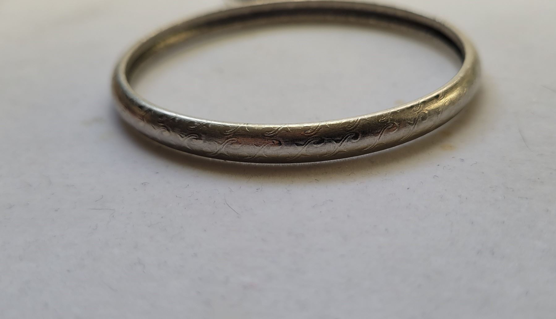 SETTING STAMPED 925, ON AN 18" BOX LINK CHAIN AND AN LIGHTLY ETCHED BANGLE STYLE BRACELET. JEWELLERY