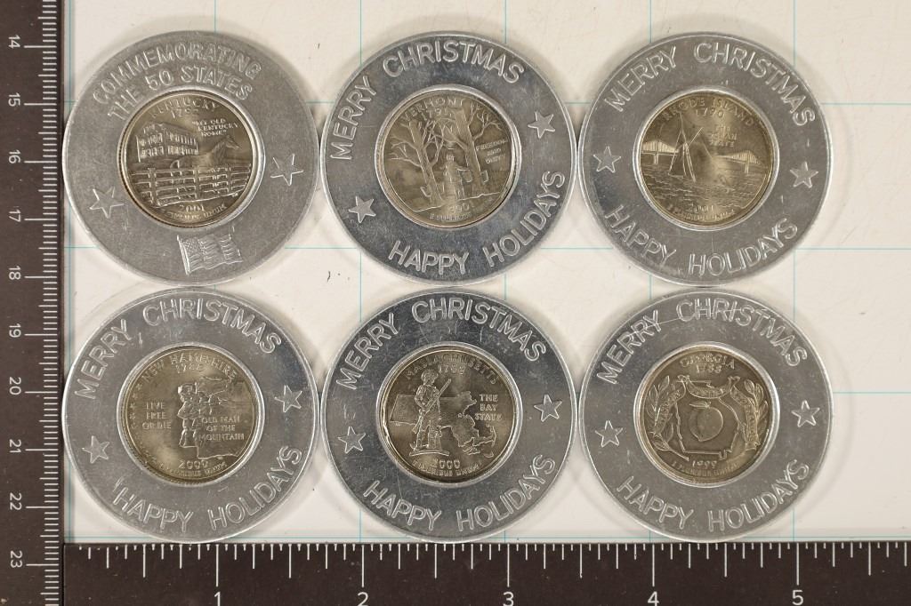 MASSACHUSETTS, 2000-D NEW HAMPSHIRE, 2001-P RHODE ISLAND, 2001-D VERMONT AND 2001-D KENTUCKY. COMMEMORATING THE 50 STATES, MERRY CHRISTMAS HAPPY HOLIDAYS