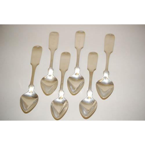 (6) ENGLISH SILVER TEASPOONS - SET (6) HALLMARKED ENGLISH SILVER TEASPOONS (LATE 19TH CENT. LONDON) W/ FIDDLE HEAD STYLE PATTERN-EA. MONOGRAMMED A. PRICE (5 TROY OZ.) - WEAR, DENTS