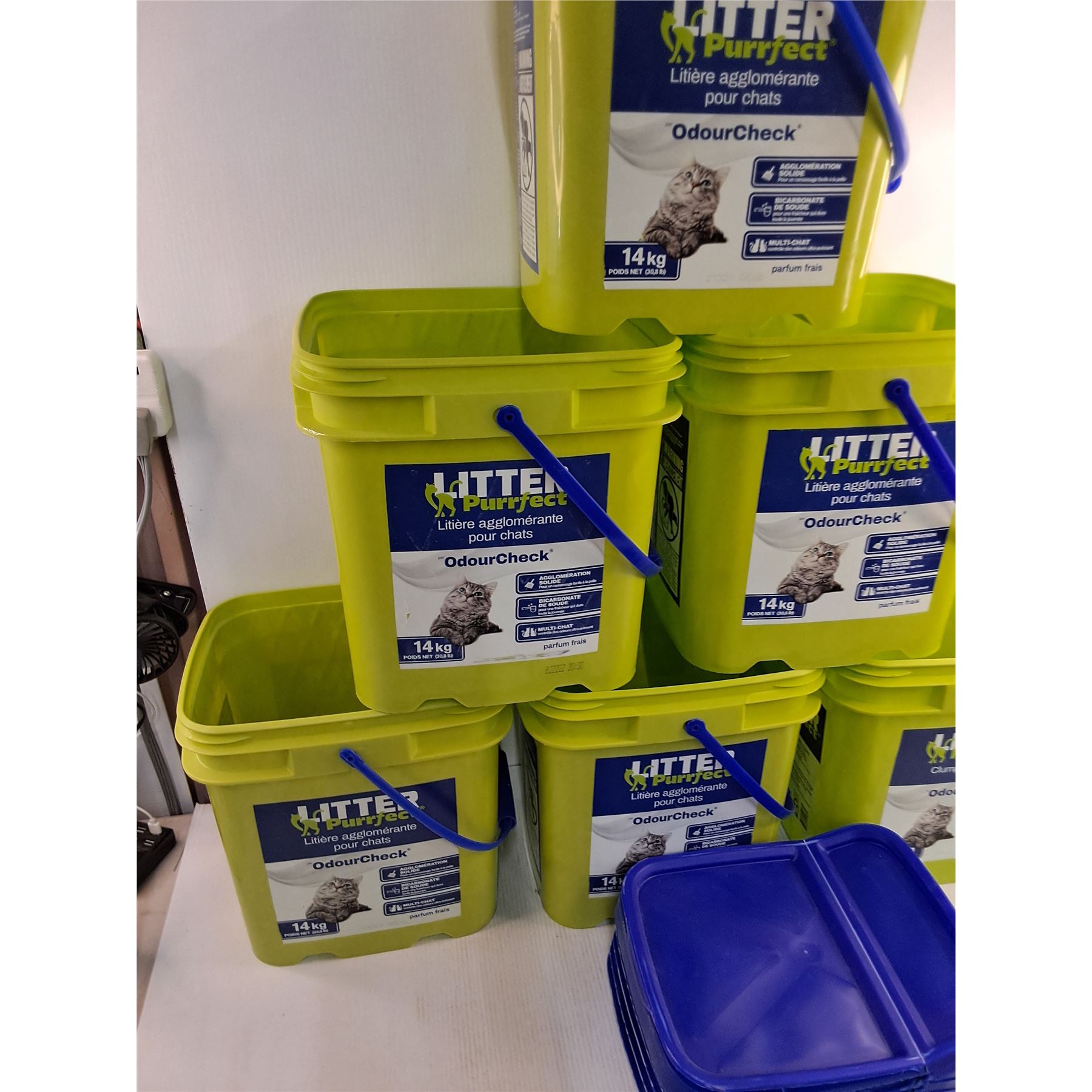 (6) Empty 12  Kitty Litter Tubs With Lids, Cannot Ship