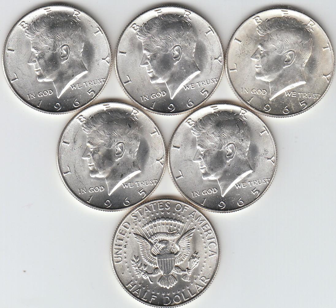 6 FLASHY HIGH GRADE SILVER KENNEDYS 1965 OUT OF ROLL