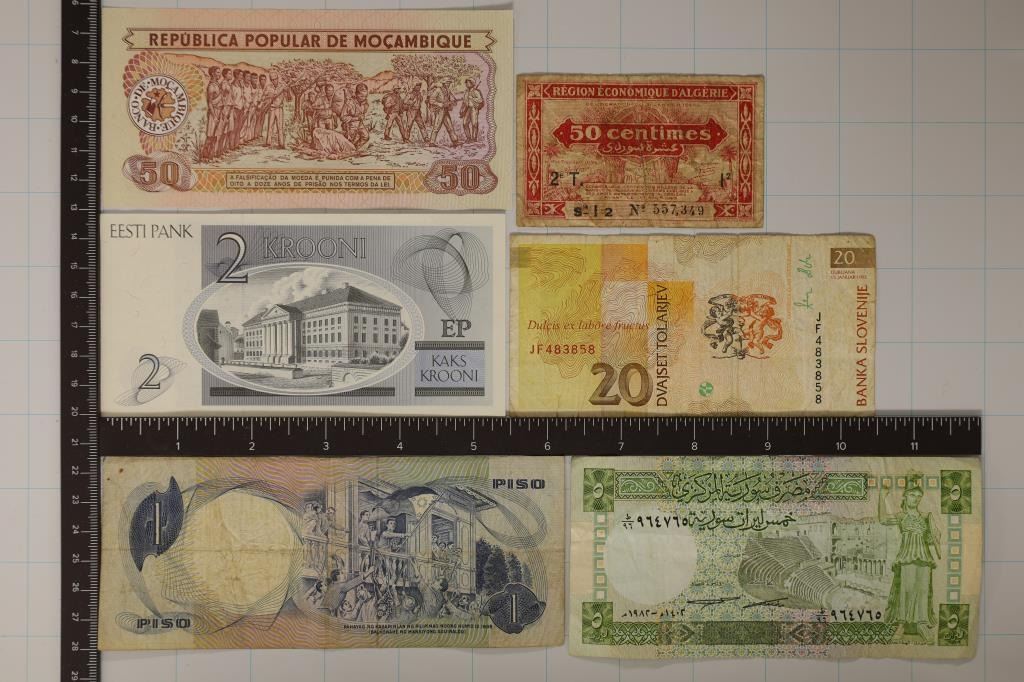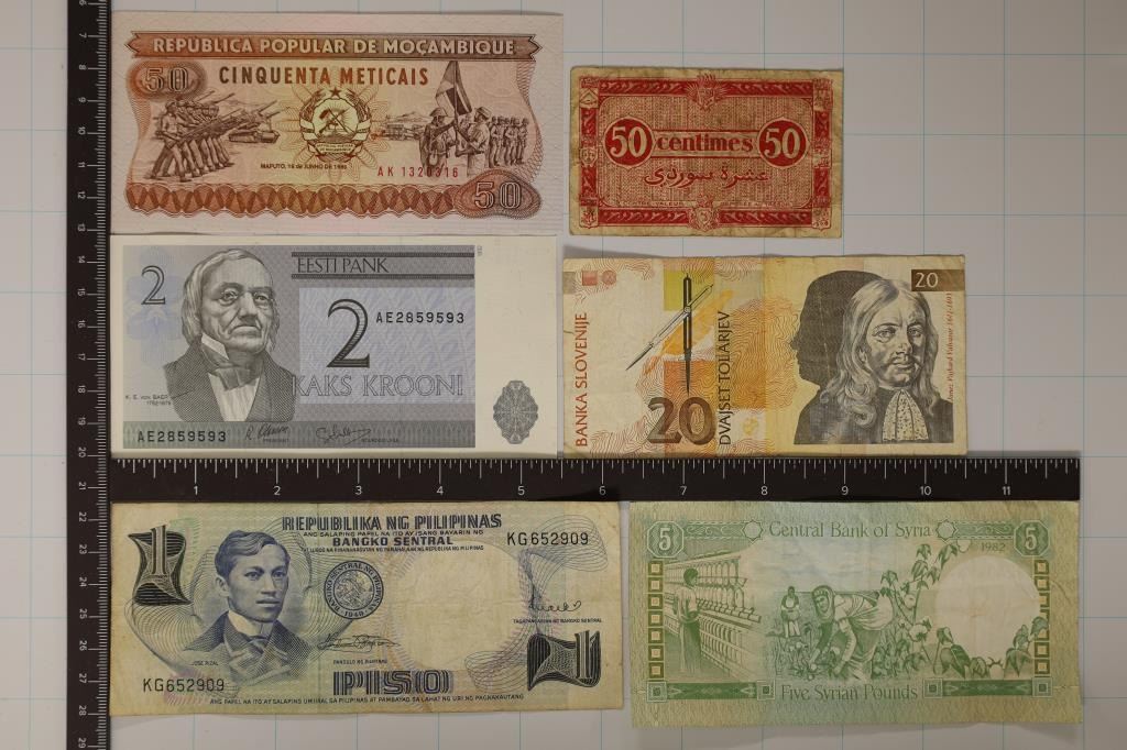 PHILIPPINES 1 PISO, 1982 SYRIA 5 POUNDS, 1986 MOCAMBIQUE 50 METICAIS (CU), 1992 ESTONIA 2 KROONI (CU) AND 1992 SLOVENJIE 20 TOLAR
