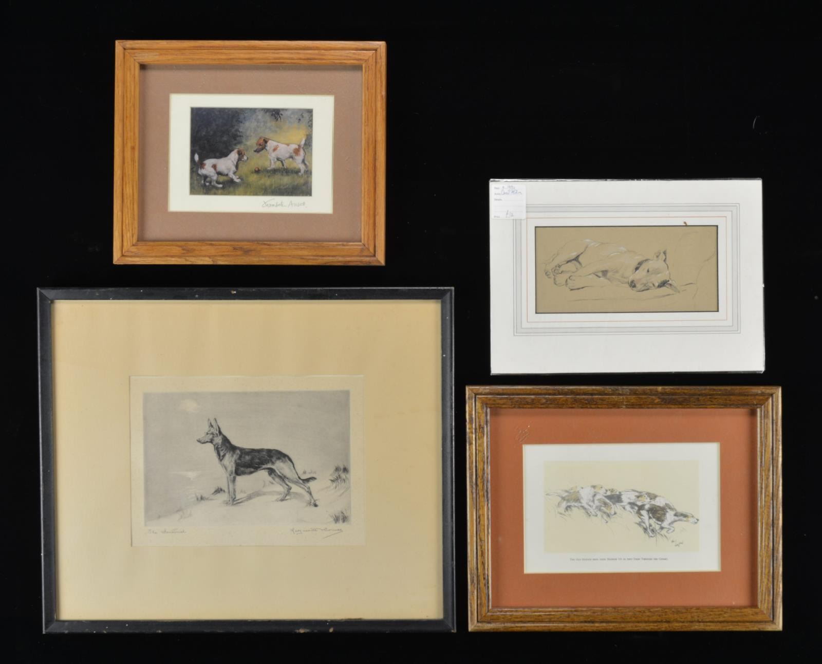 2) Cecil Aldin circa 1920 "The Old Hounds have their hackles up as they dash through the cover". 13.5" x 10.5" framed print showing several racing cocker spaniels. CONDITION: very good overall.