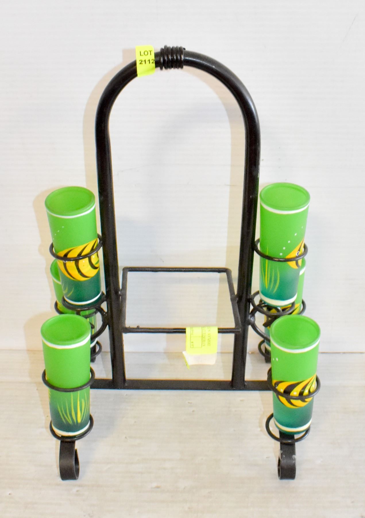 6 FROSTED SHOT GLASS'S W/ DISPLAY STAND