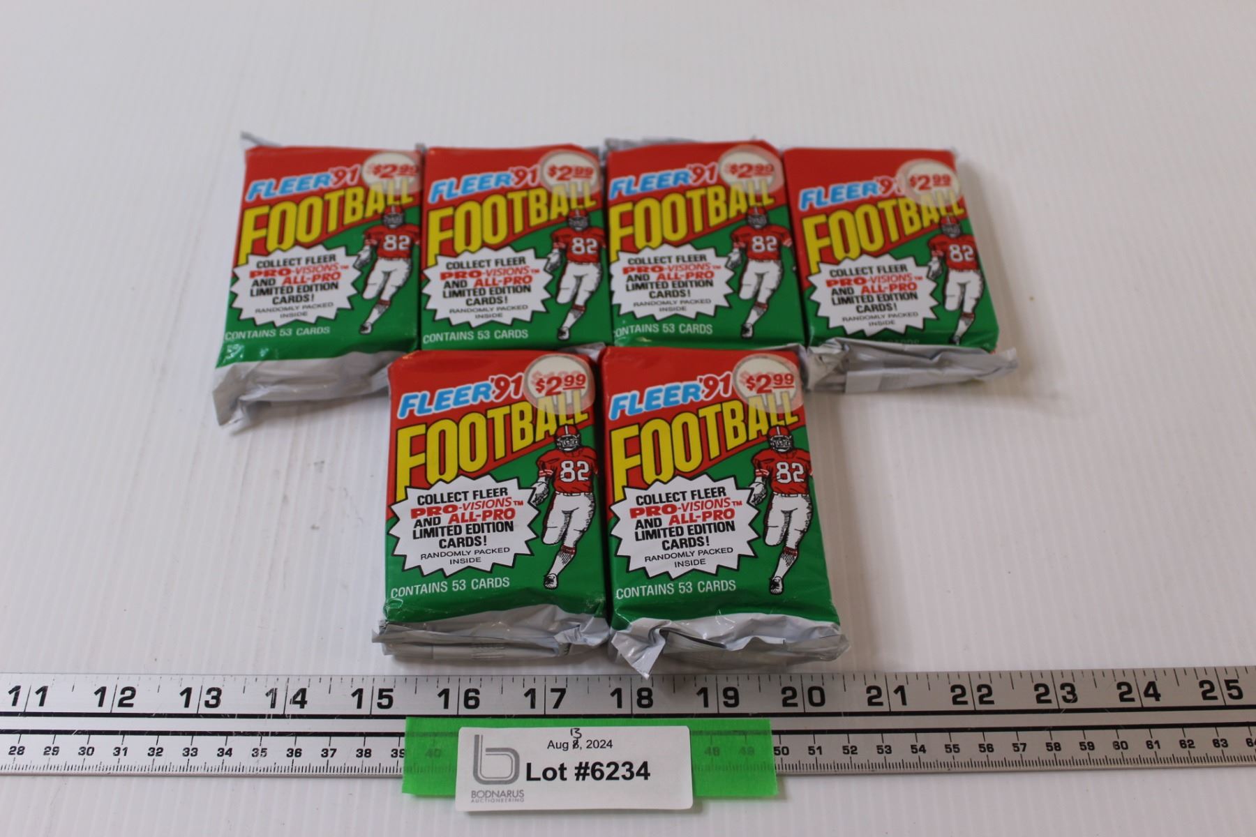 (6) Fleer 1991 Football Trading Card Packages - NIB